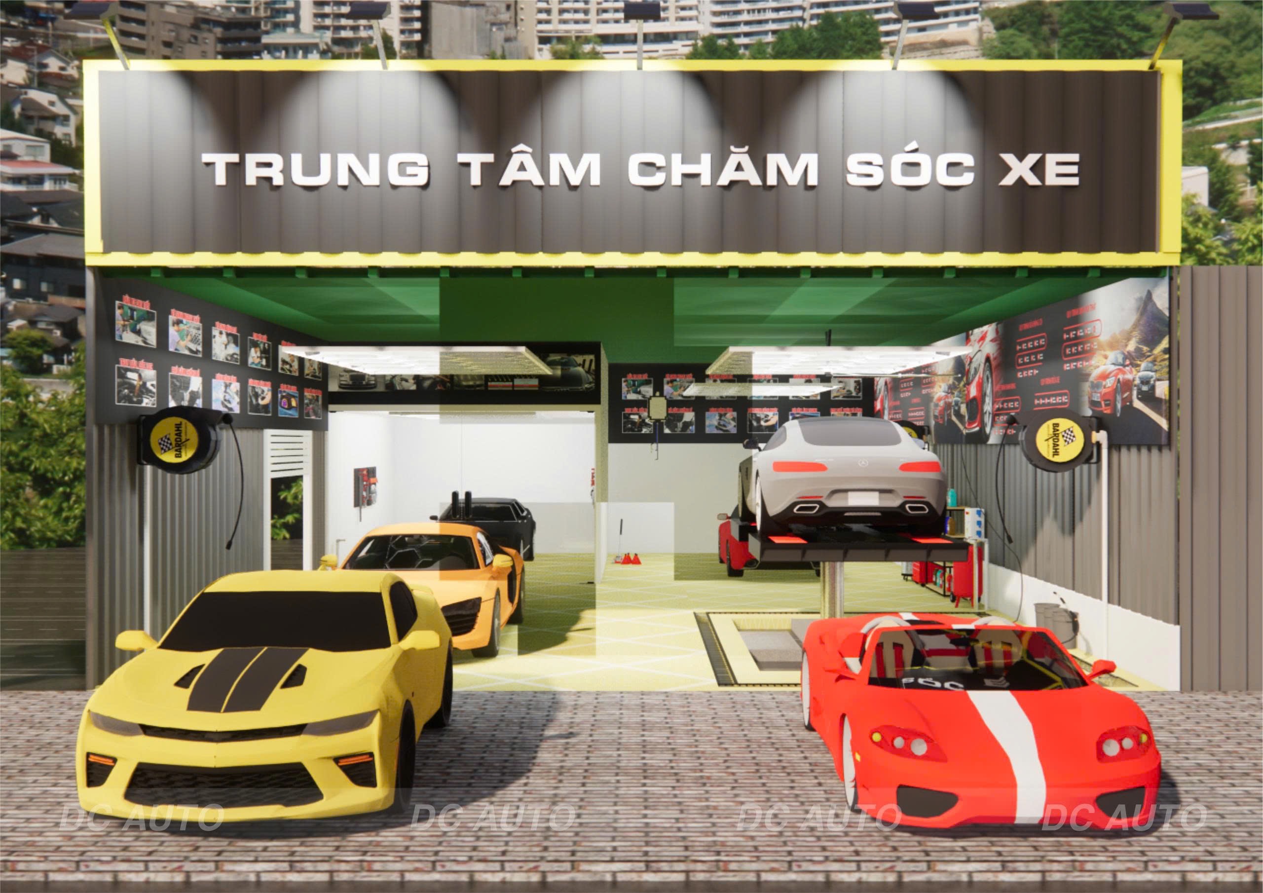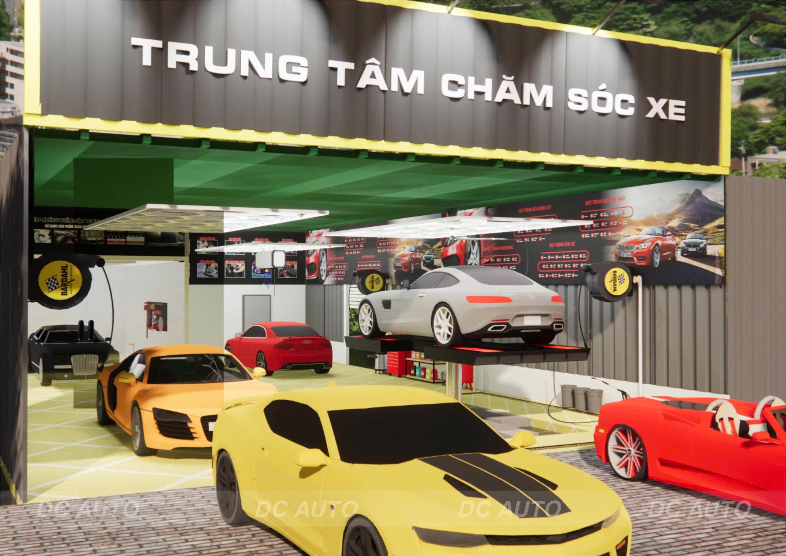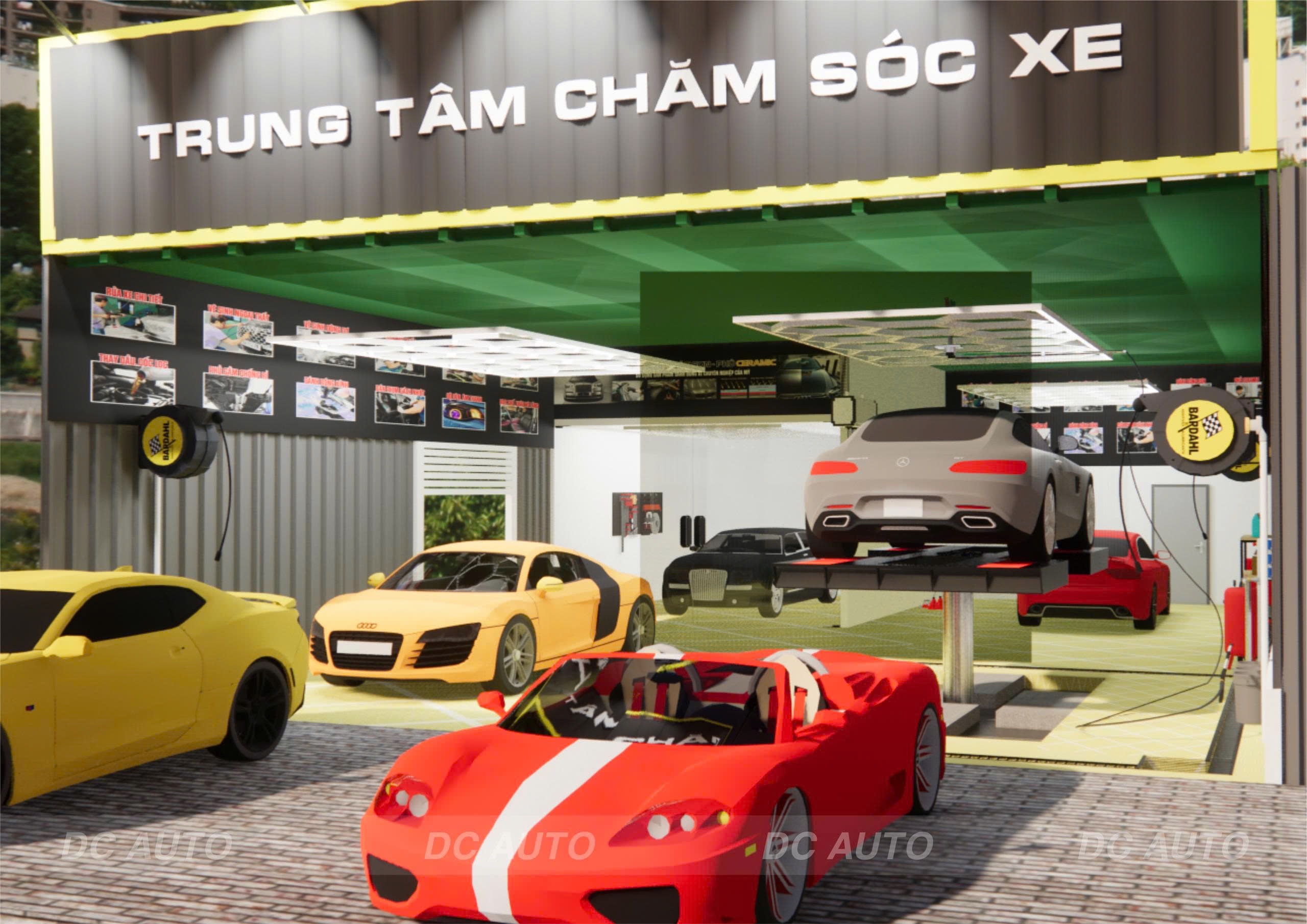 - Khu vực chăm sóc chi tiết – detailing đặt ở vị trí trung tâm, đảm bảo đủ ánh sáng và không gian thao tác.