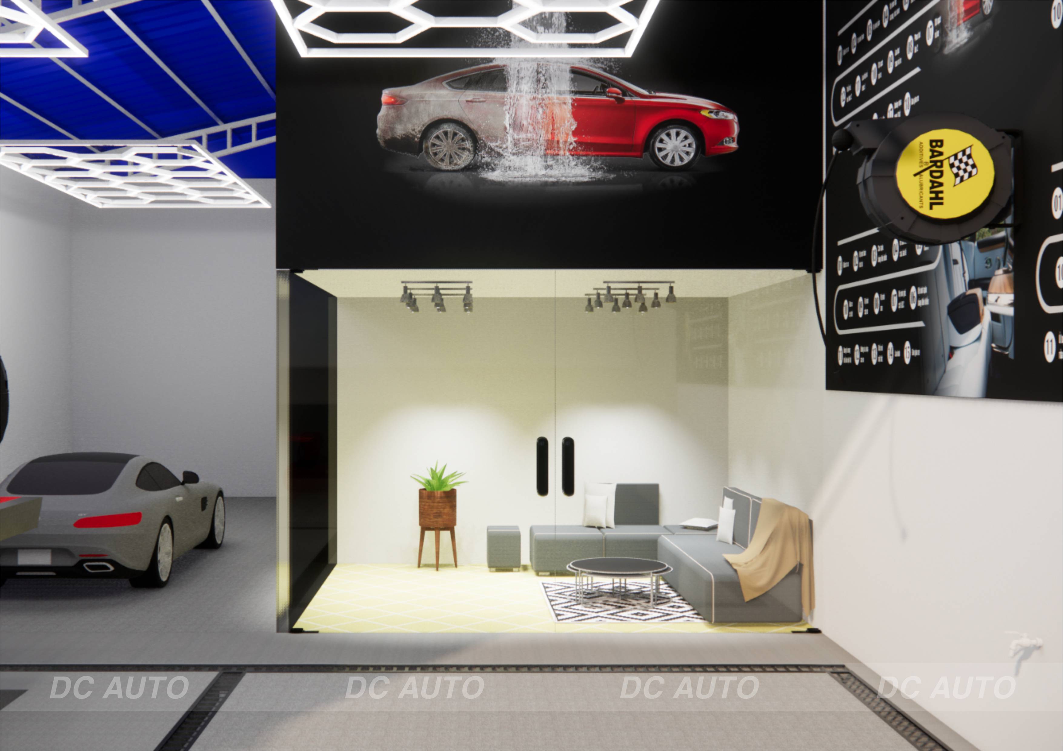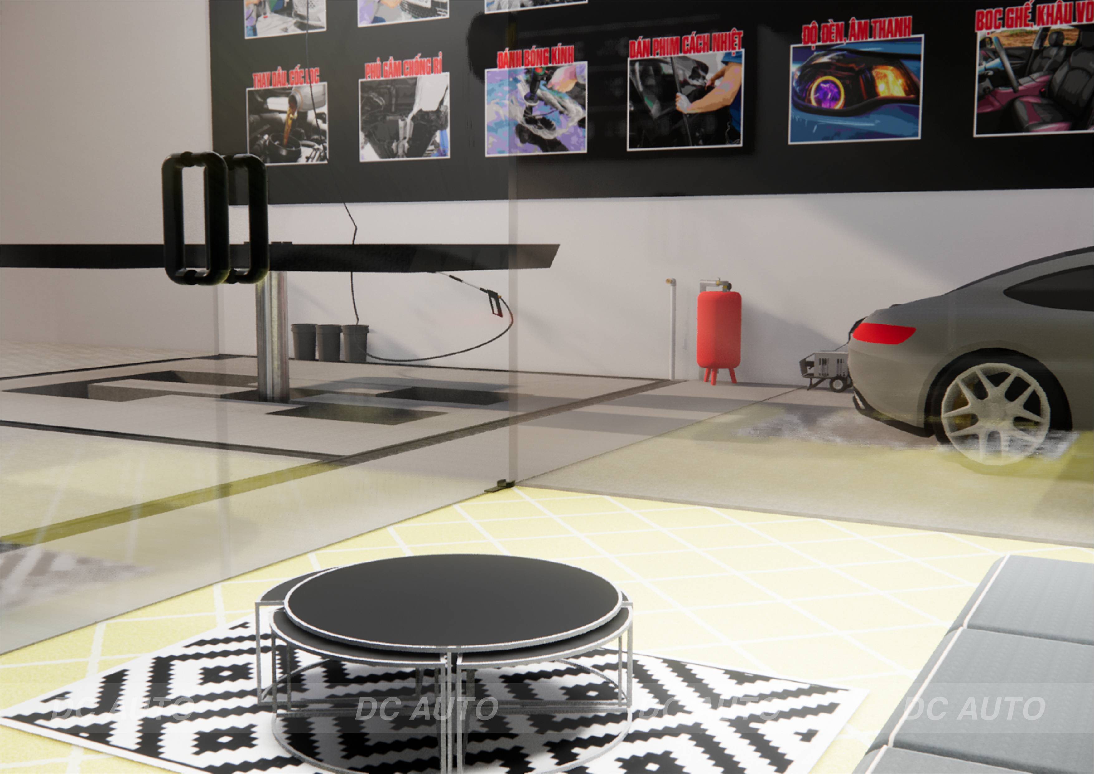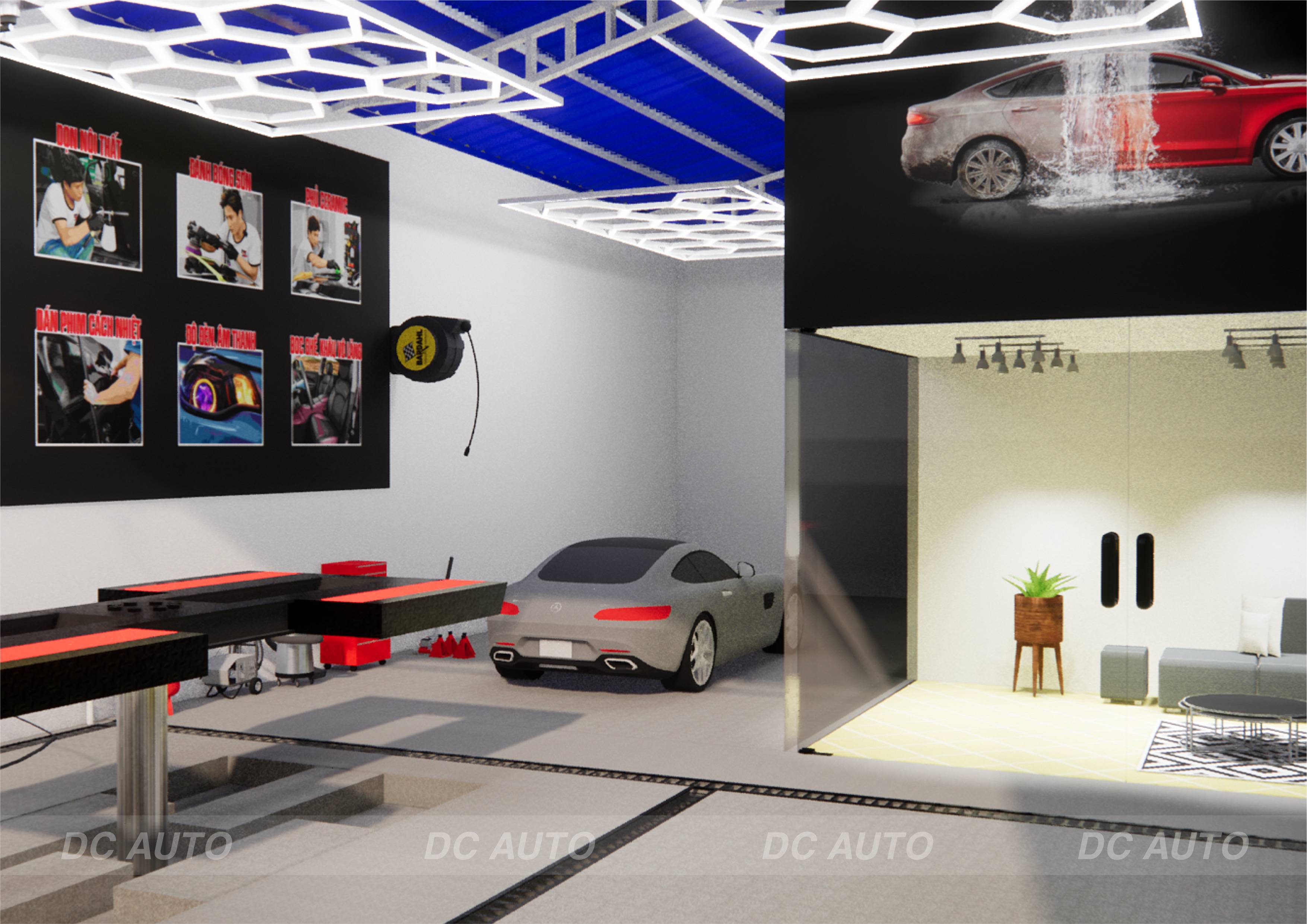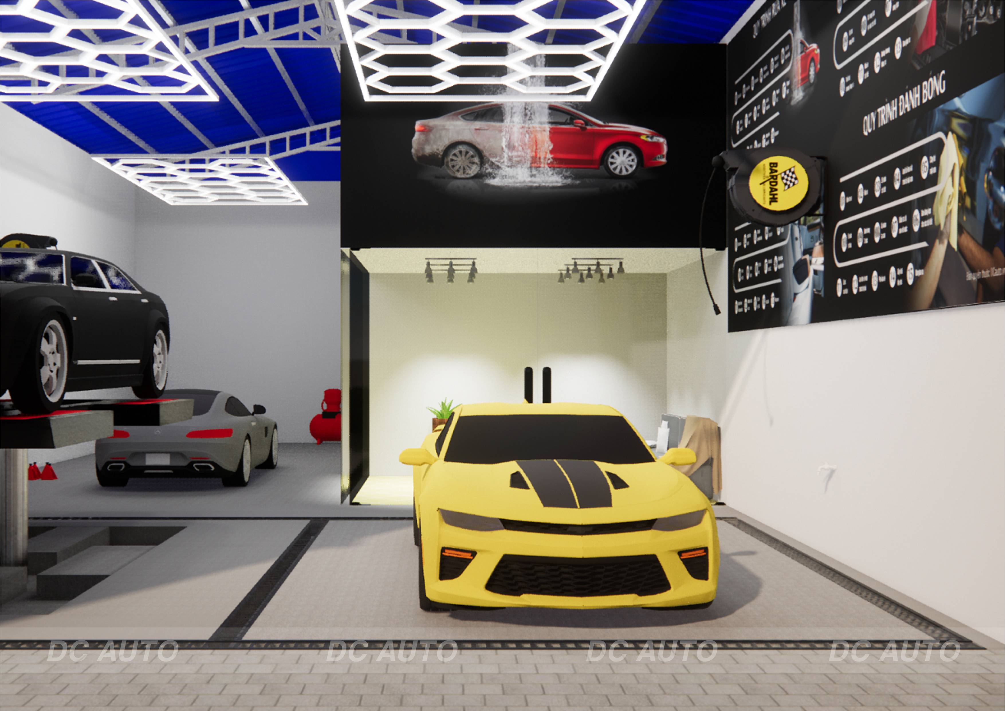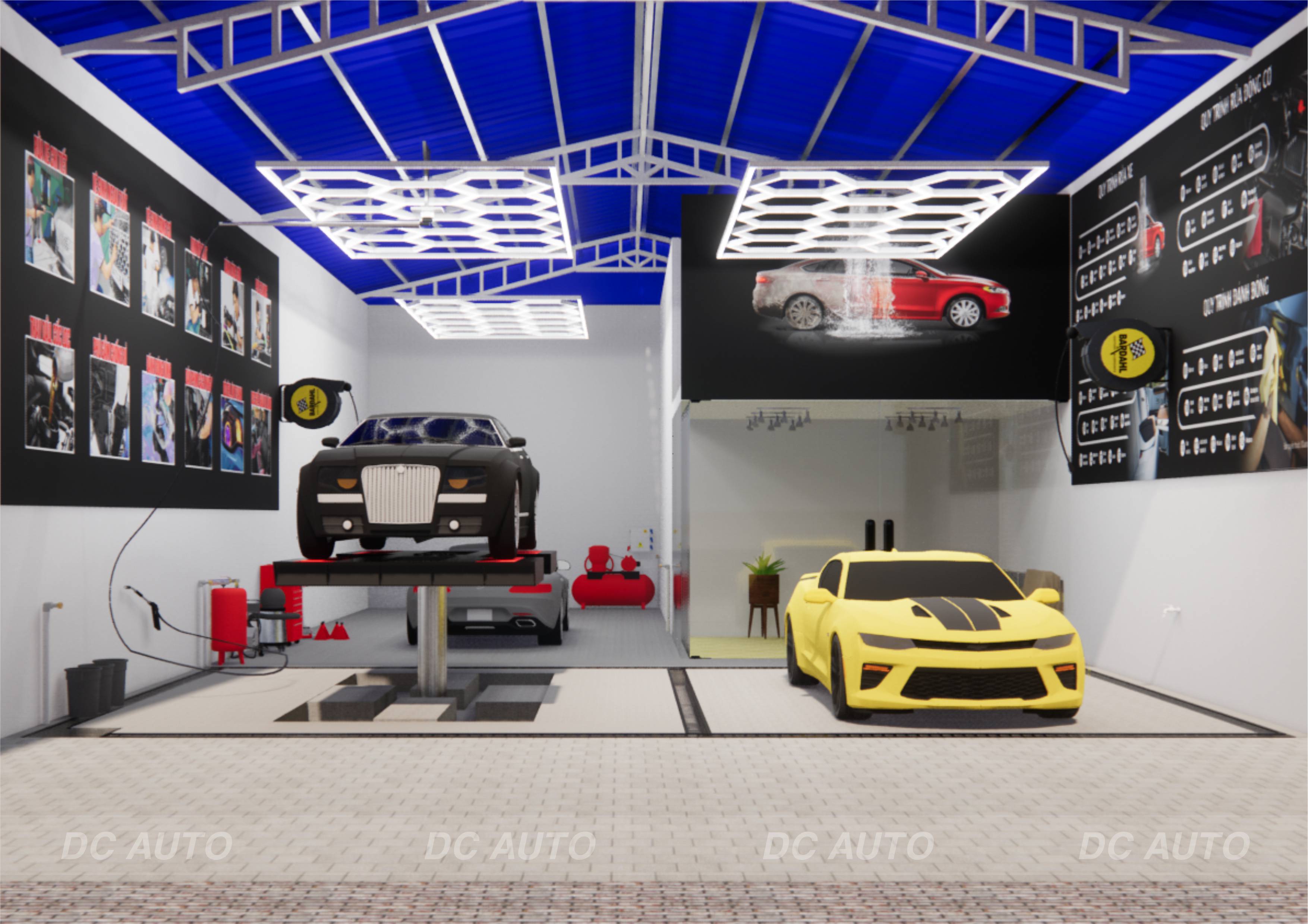 Với diện tích khoảng 200m2, anh Hoàn đã cho xây dựng tổ hợp trung tâm chăm sóc xe, đánh bóng, dán phim dựa trên nền nhà xưởng quán ăn cũ.