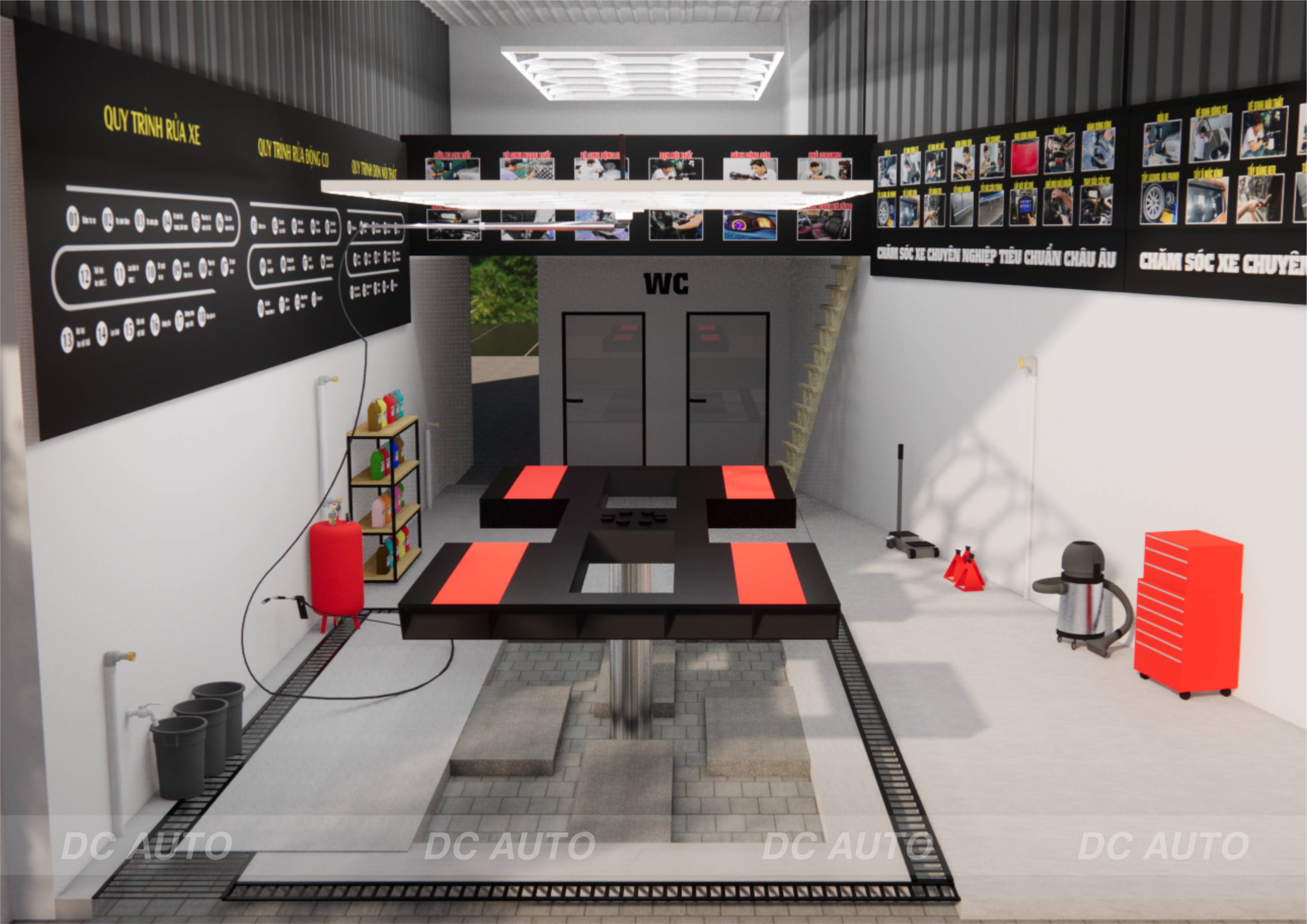 - Cầu nâng 1 trụ rửa xe