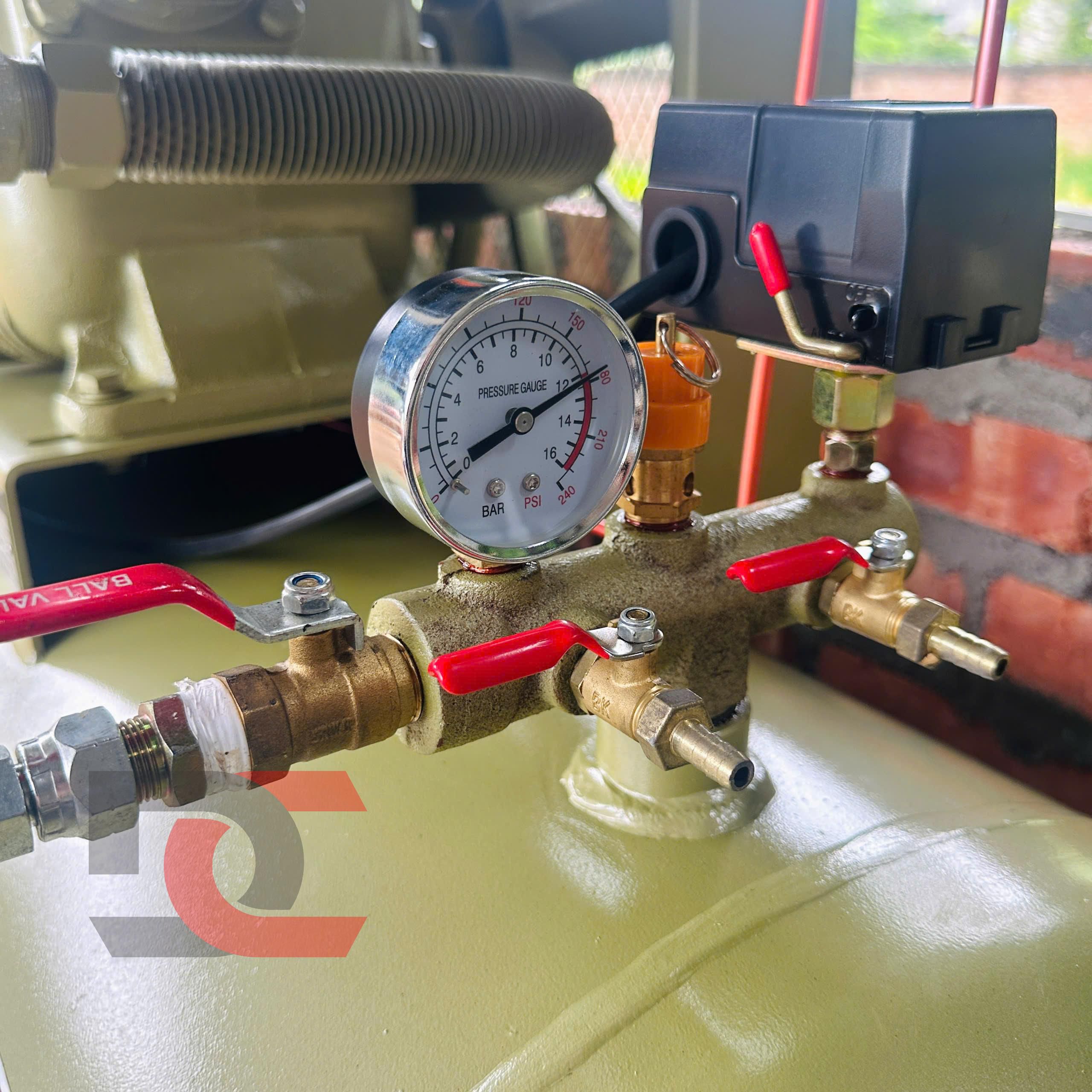 Ngoài ra máy nén khí còn được trang bị hộp điều khiển điện nhằm bảo vệ và điều khiển hoạt động của máy.
