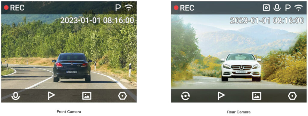 Chế độ ghi hình kép mang lại phạm vị phủ sóng toàn diện cho cả phía trước và phía sau, cung cấp khả năng bảo vệ kép và bằng chứng trực quan thuyết phục