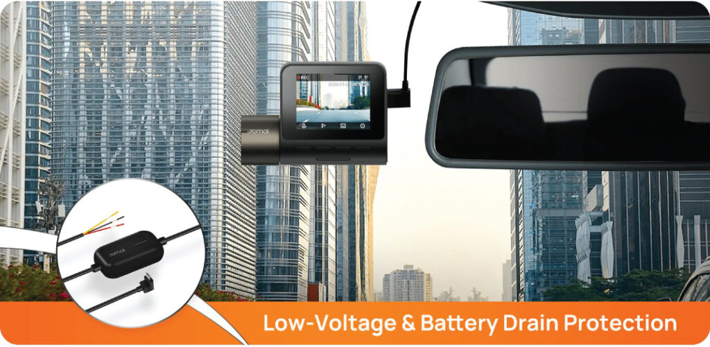 Khi được cấp nguồn bằng Bộ dây Hardwire Kit 70mai UP02, camera sẽ bảo vệ ắc quy và hệ thống điện của xe bạn khỏi bị hư hỏng do điện áp thấp. Nó sẽ kích hoạt ngắt kết nối nguồn điện tự động khi điện áp của xe giảm xuống dưới 11,8V.
