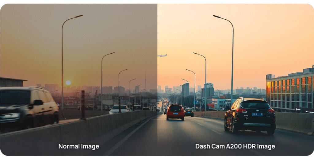Công nghệ HDR, được hỗ trợ bởi thuật toán độc quyền MaiColor Vivid+ Solution™ của 70mai, đảm bảo các chuyển đổi ánh sáng mượt mà hơn và cải thiện đáng kể khả năng ghi hình đặc biệt trong các trường hợp quan trọng như bắt biển báo giao thông và biển số xe. Trong các điều kiện ánh sáng yếu, chẳng hạn như trong đường hầm tối và các tình huống có độ tương phản cao, A200 thể hiện khả năng ghi hình vượt trội.
