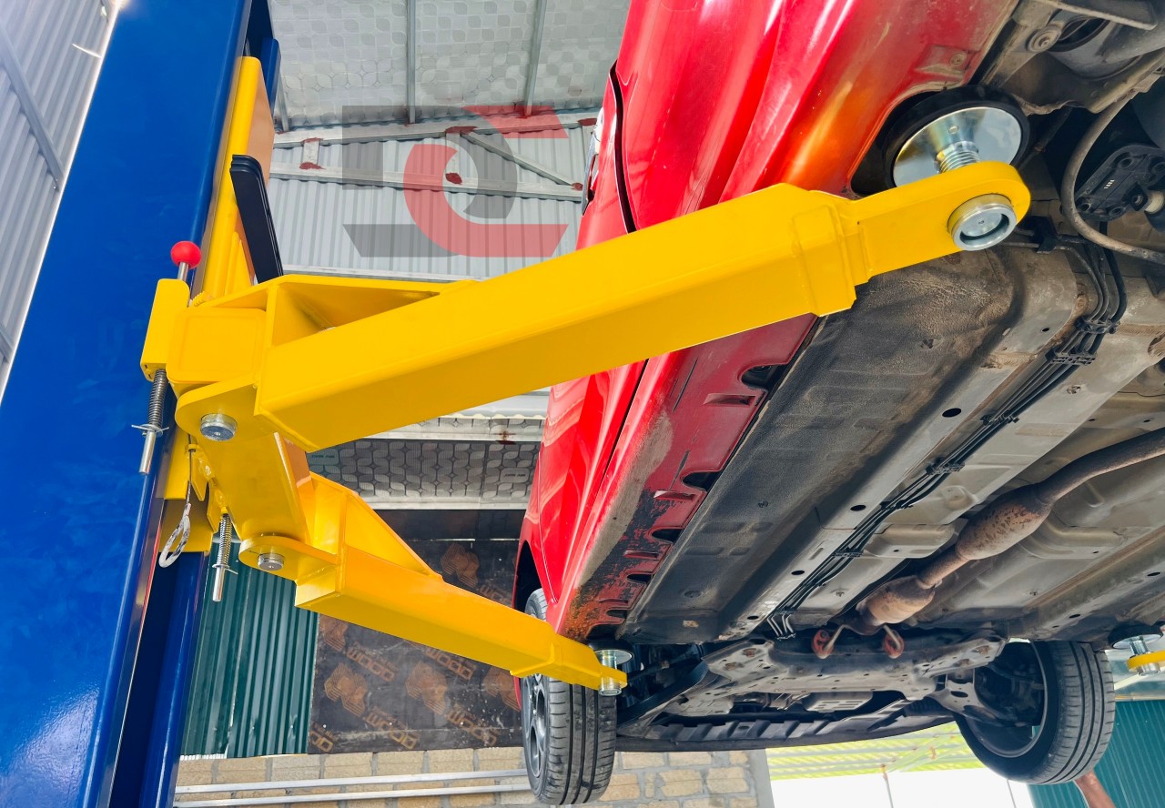 - Vận hành cầu cho tay nâng đi lên tiếp xúc với thân xe, nâng xe cả 4 tay nâng đều lên cùng lúc.