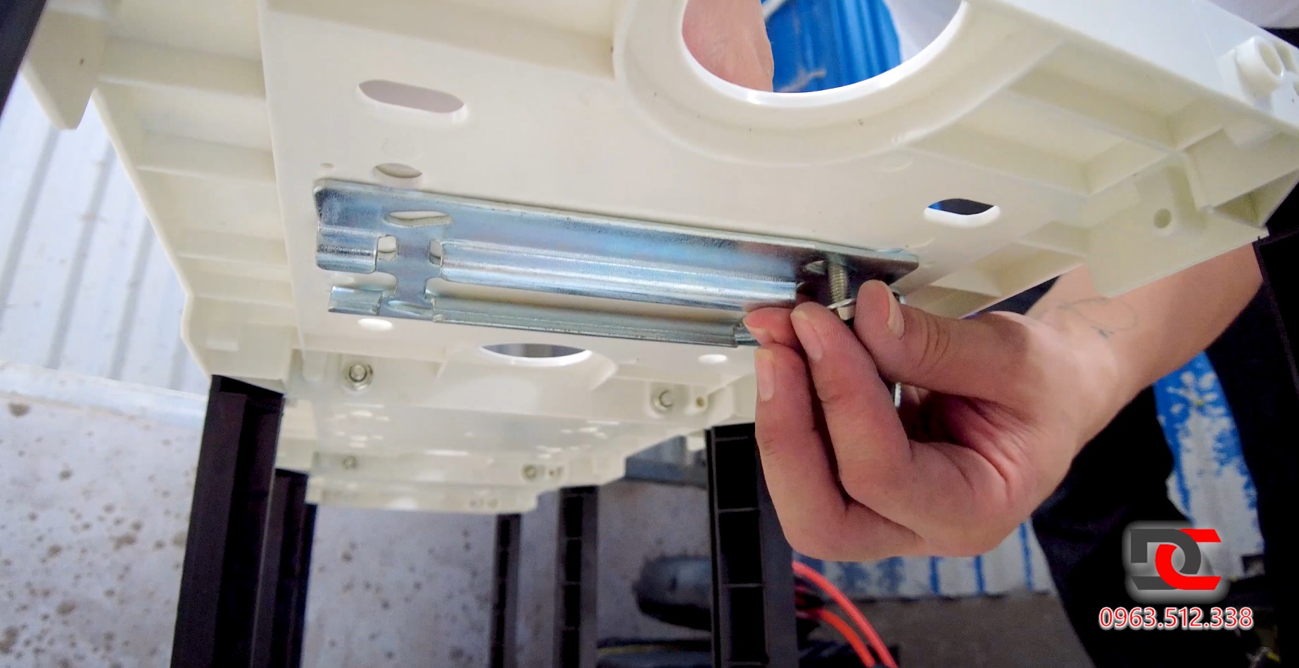 Tiếp theo, lắp thanh treo lên trần và thanh treo cuộn rulo