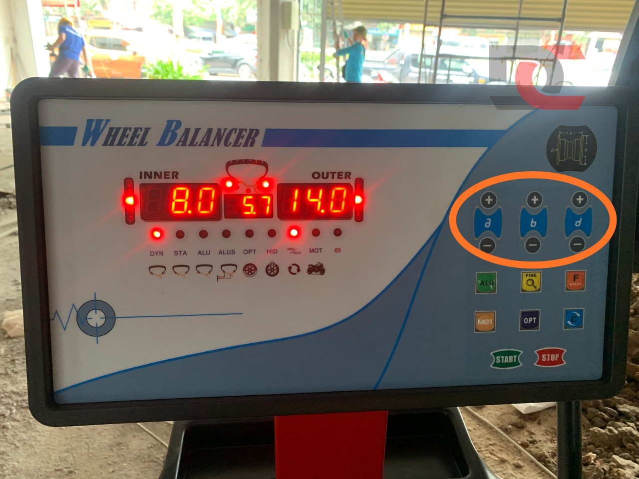 - Nút a (+,-) thay đổi khoảng cách của thước kẹp đến vành xe (lazang). Theo cây thước kéo từ máy ra. Máy sẽ tự động nhập thông số khi thao tác kéo thước ra đo.