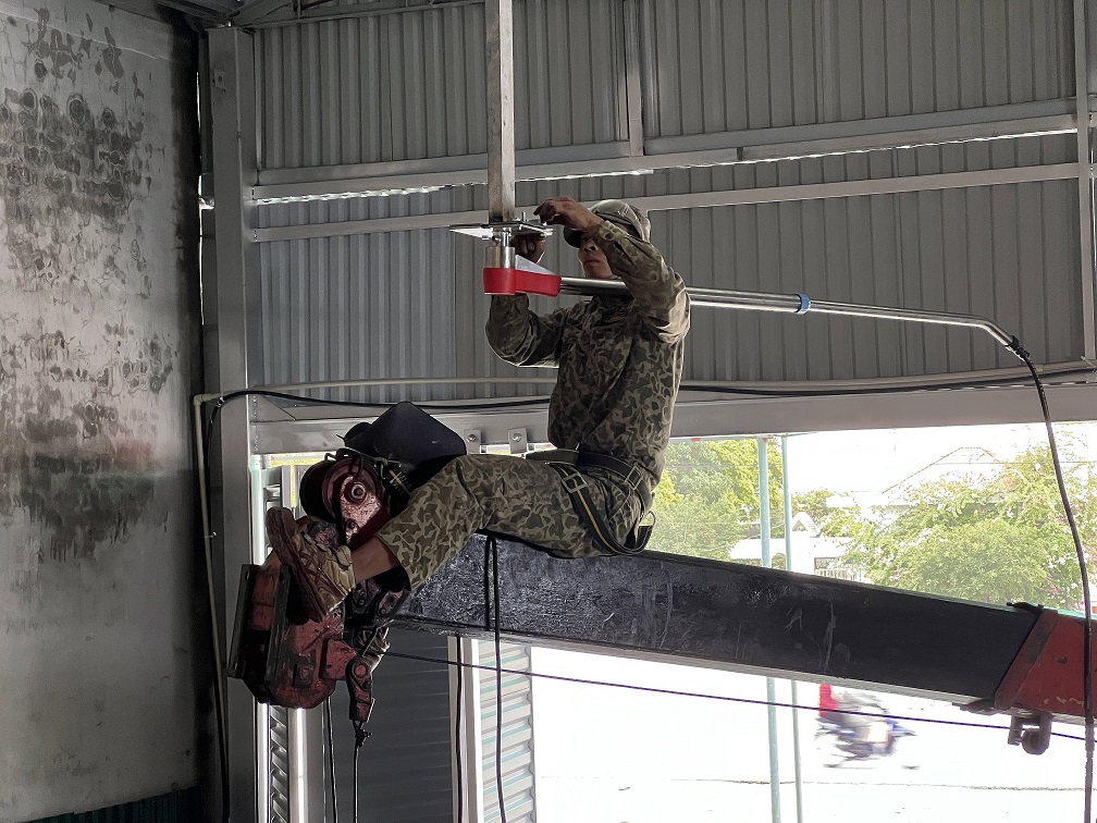 Hàn bản mã vào một thanh sắt để hạ chiều cao tay quay, tính từ mặt cốt nền 0.00 lên là 4m2