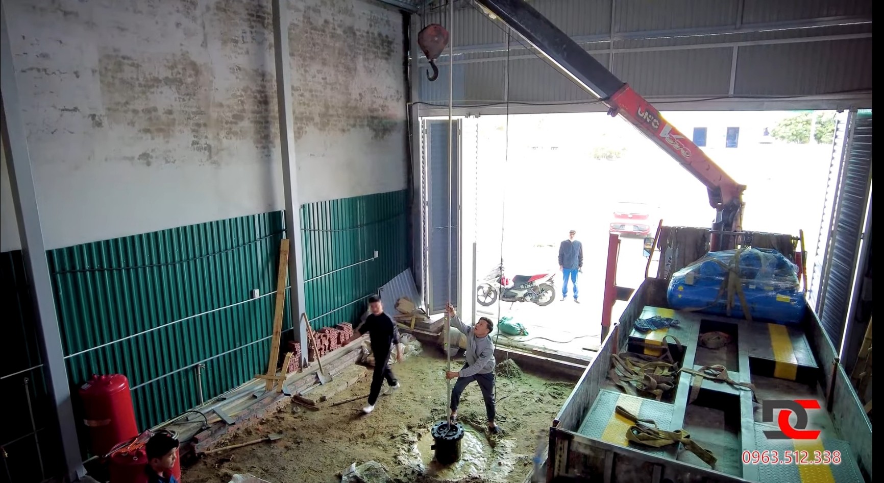 Với không gian xưởng hôm nay DC lắp đặt thì khách hàng lắp đặt tay quay 360 độ ở phía trên của cầu nâng 1 trụ Ấn Độ.