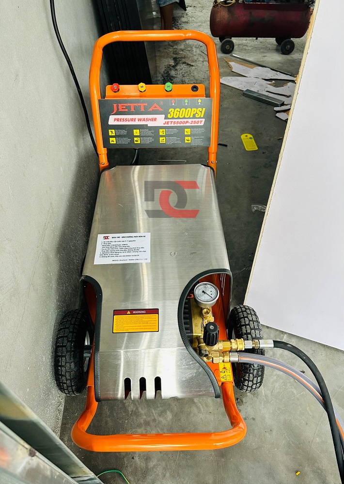 01 Máy rửa xe cao áp Jetta - Model: JET5500P-250T, với công suất motor 5.5Kw, áp lực tối đa 3600PSI, dòng máy rửa xe áp lực cao chạy nguồn điện 220V.