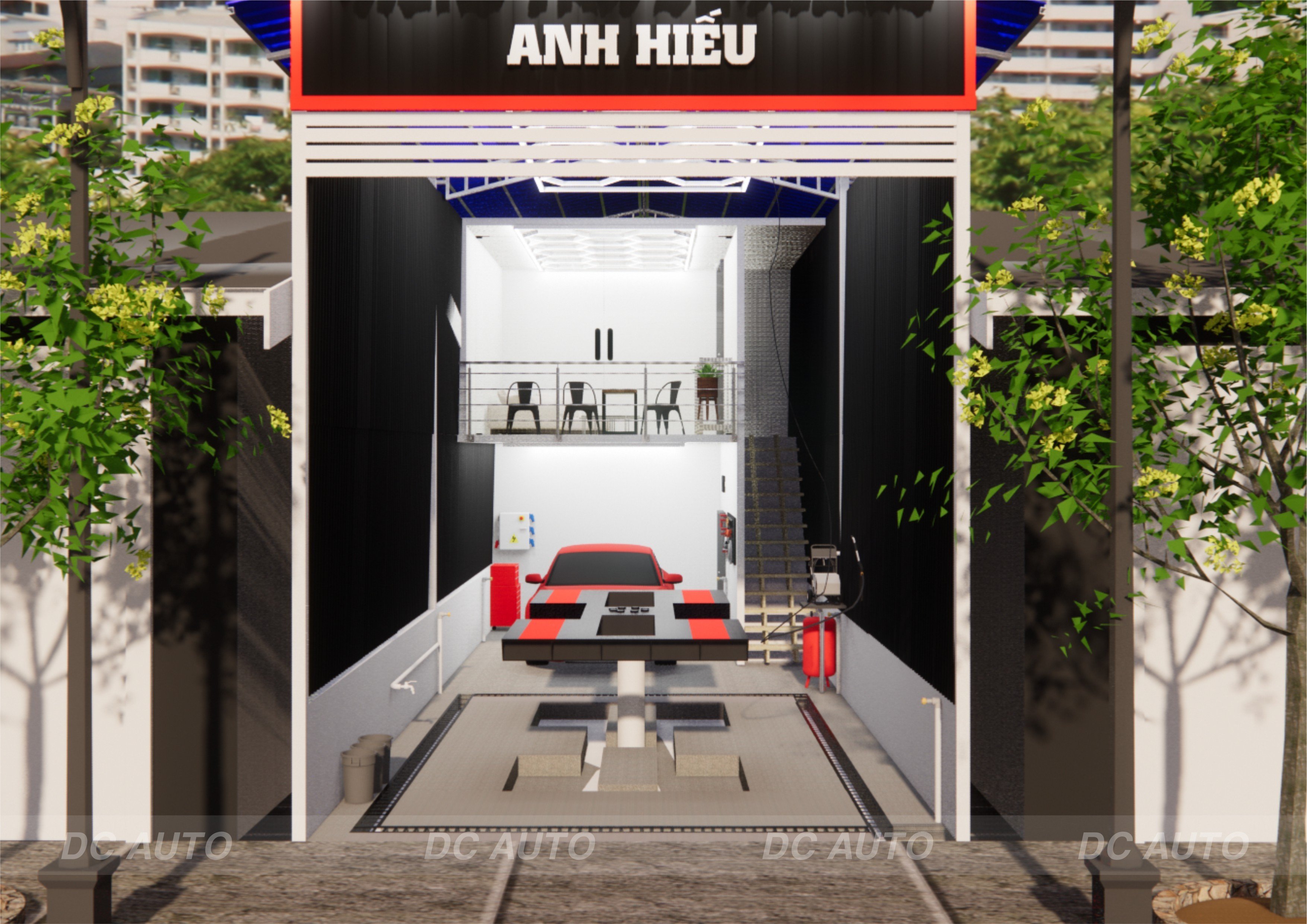 Đi cùng anh Hiếu từ khi HD Auto chỉ là một mảnh đất trống. Anh Hiếu trao đổi với DC Auto làm sao tư vấn cho anh với quỹ đất nhỏ như này, chỉ hơn 75m², mặt tiền 5m có thể xây dựng được Trung tâm chăm sóc xe hơi có cầu nâng 1 trụ cho anh. Quỹ đất của anh Hiếu cũng gần giống với quỹ đất Trung tâm chăm sóc xe DC Auto Detailing của DC Auto, với mặt tiền chỉ 5m, nhưng khác ở chỗ Trung tâm của DC Auto có 2 mặt tiền. DC Auto đã mời anh Hiếu đến thăm quan mô hình trung tâm chăm sóc xe của DC Auto để tham khảo và xây dựng đúng theo mô hình DC Auto tư vấn, đưa ra. Ban đầu anh Hiếu chỉ định xây dựng nhà xưởng cao 4.5m, phòng khách và nhà sinh khoảng 40m² ở phía dưới. Qua tư vấn, trao đổi, khảo sát thực tế mặt bằng DC Auto đã tư vấn anh Hiếu xây dựng nhà xưởng cao 6m, chỉ để nhà vệ sinh bên dưới, dựng gác xép làm phòng tiếp khách bên trên, toàn bộ diện tích phía dưới để triển khai các dịch vụ chăm sóc xe, có thể tối ưu diện tích sử dụng. DC Auto lên thiết kế bản vẽ 2D nhà xưởng, bản vẽ 3D công năng xưởng cho khách hàng dễ hình dung ra Trung tâm sẽ hoạt động như thế nào, thiết kế biển bảng quảng cáo bằng file mềm.