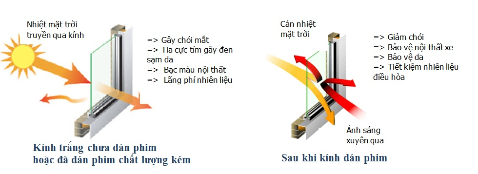 Ánh sáng sau khi qua phim cách nhiệt sẽ dịu hơn vì một phần đã bị hấp thu vào các lớp của phim hoặc bị phản xạ lại vào môi trường. Điều này điều này giúp lái xe quan sát tốt và rõ ràng hơn.