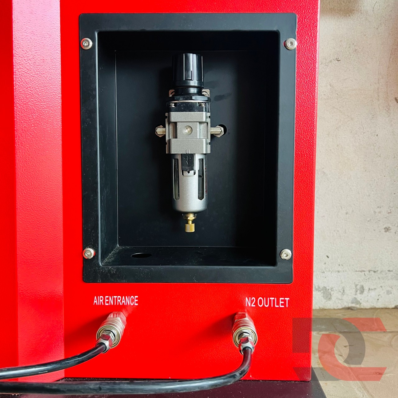 - Bộ lọc khí: tách nước từ đường khí nén thường vào trong bình chứa nitơ bên trong, đảm bảo khí nitơ tinh khiết tầm 99%.