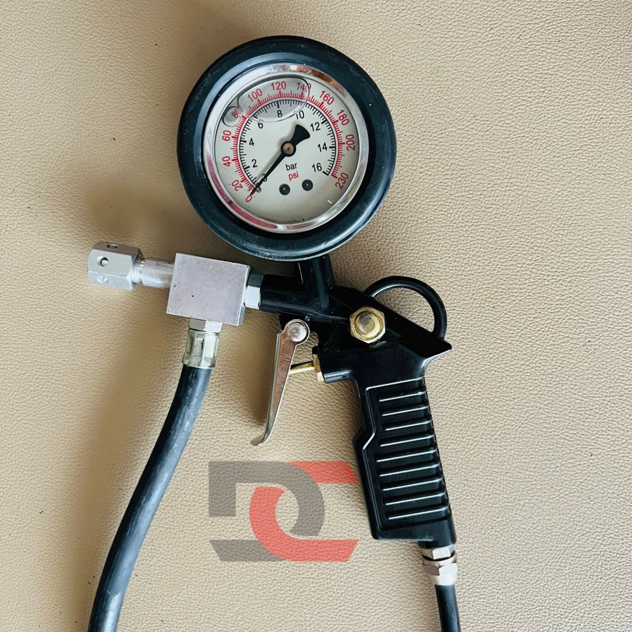 Phụ kiện đi kèm máy bơm Nitơ HK model HP 1620A bao gồm: 01 đồng hồ bơm lốp dạng máy cơ, dây nguồn kèm theo máy dài 1.5m, 01 dây bơm 5m, 01 dây hút 2m.