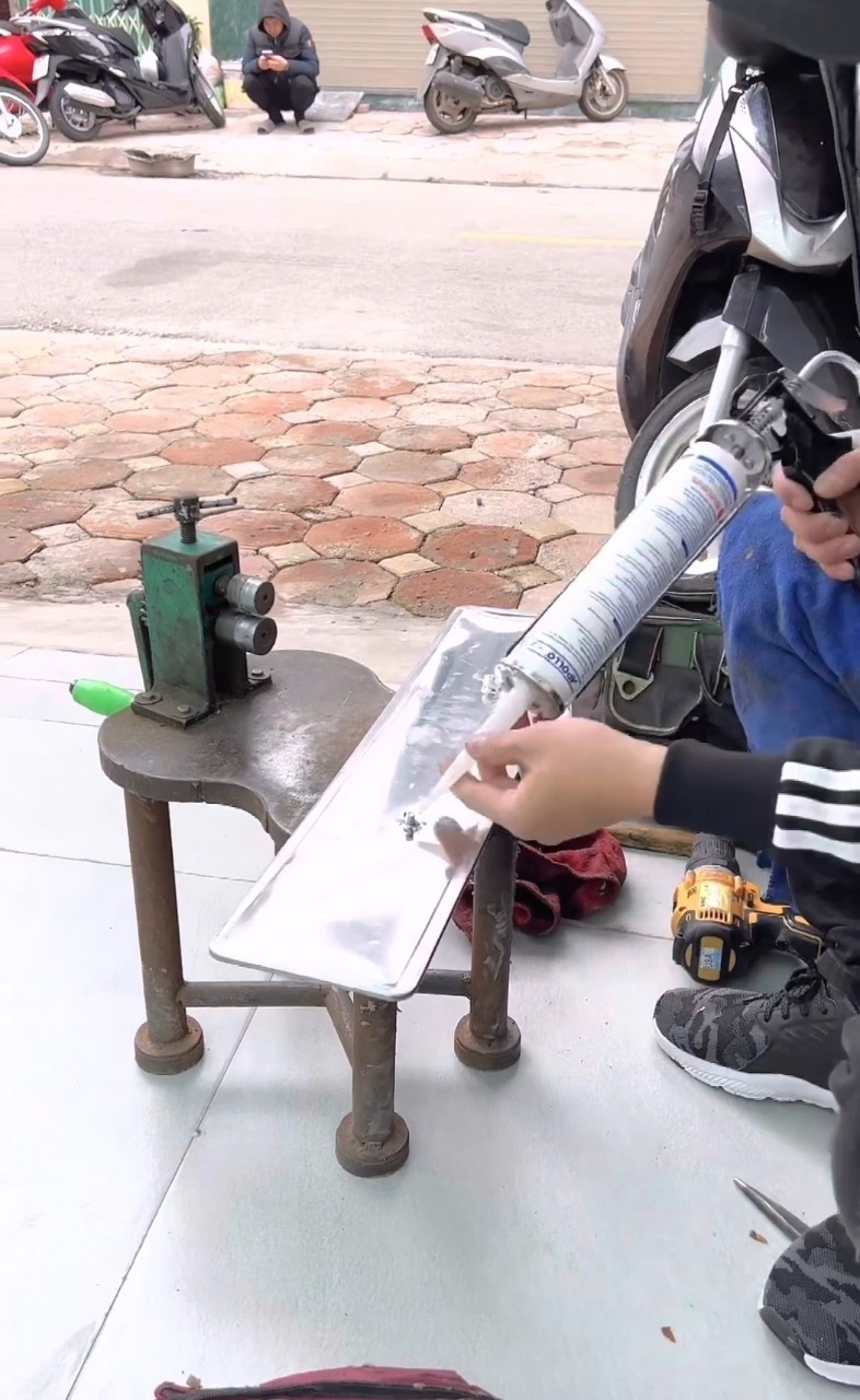 Kỹ thuật viên thực hiện công đoạn này nhất thiết phải có kinh nghiệm làm, quen tay để vừa bôi kín được xung quanh biển số, vừa không chiết keo quá nhiều.