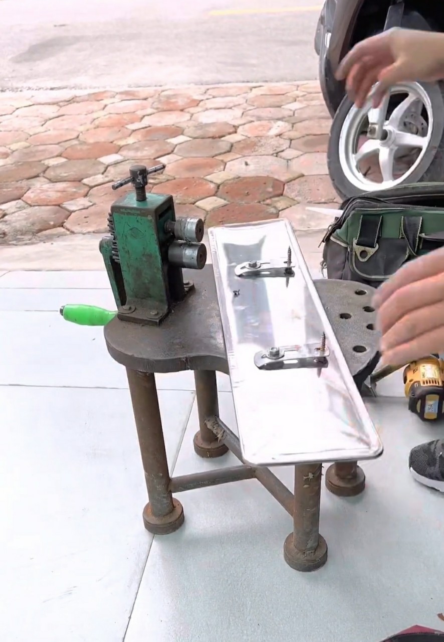 Sau khi đã gập được hết mép phôi, biển số sẽ được cho vào máy cán để láng phẳng mép sao cho đẹp, chắc chắn và kín nhất.