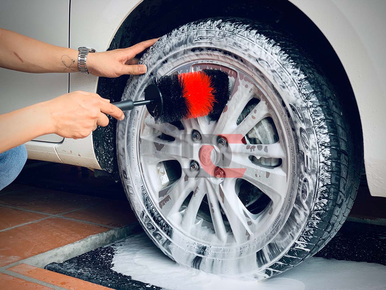 Bước 4: Vệ sinh lốp, lazang, hốc bánh