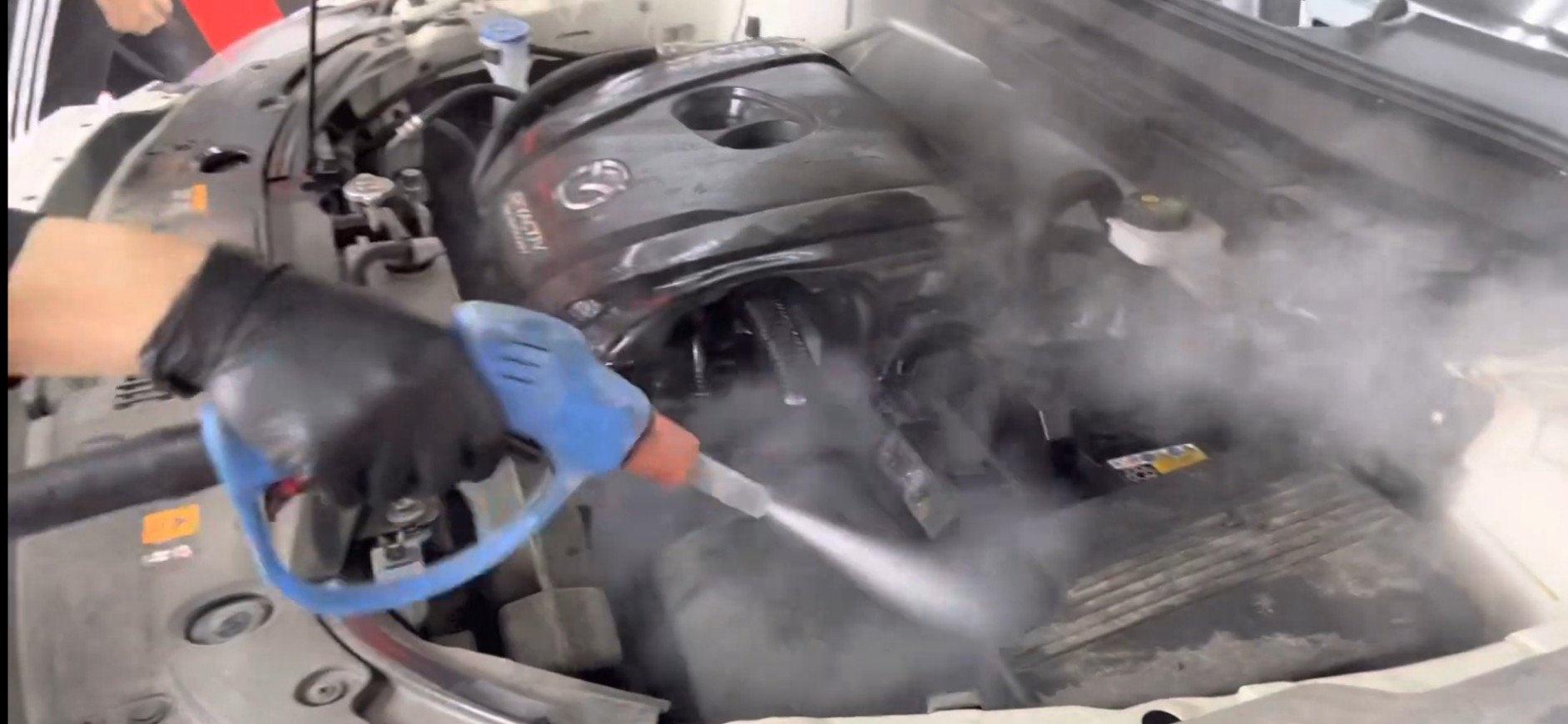 Đối với khoang động cơ xịt hơi nước nóng vào bay hơi rất nhanh, không đọng lại nước và làm các vết dầu mỡ tan chảy ngay lập tức.
