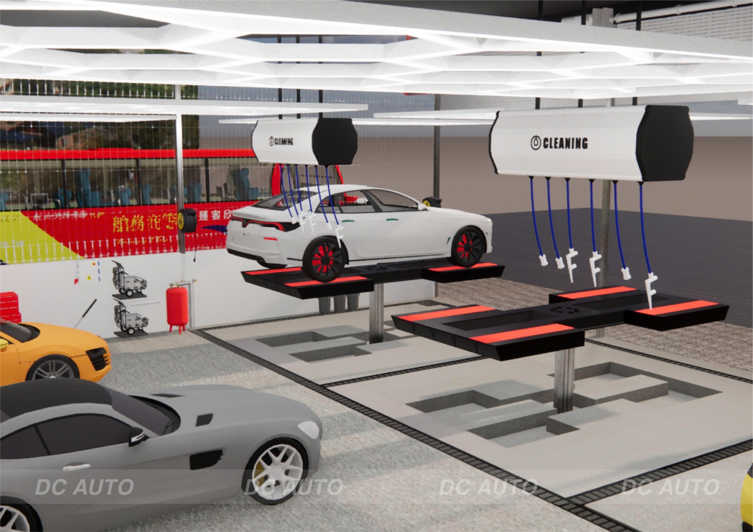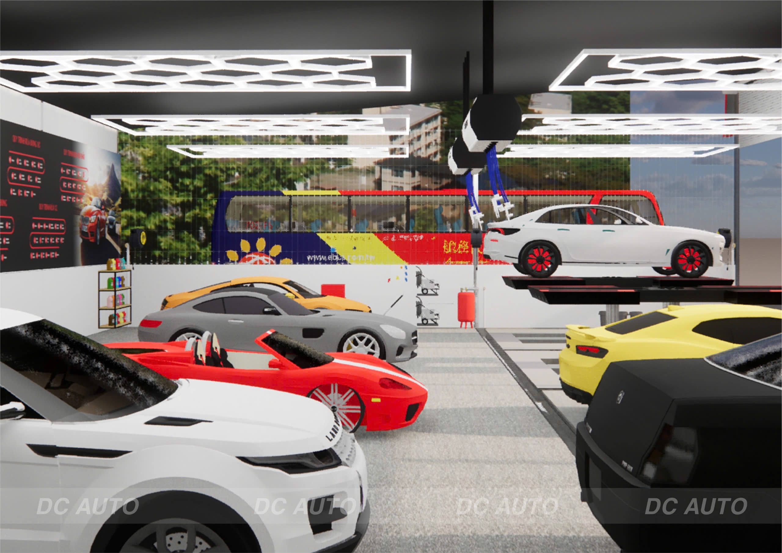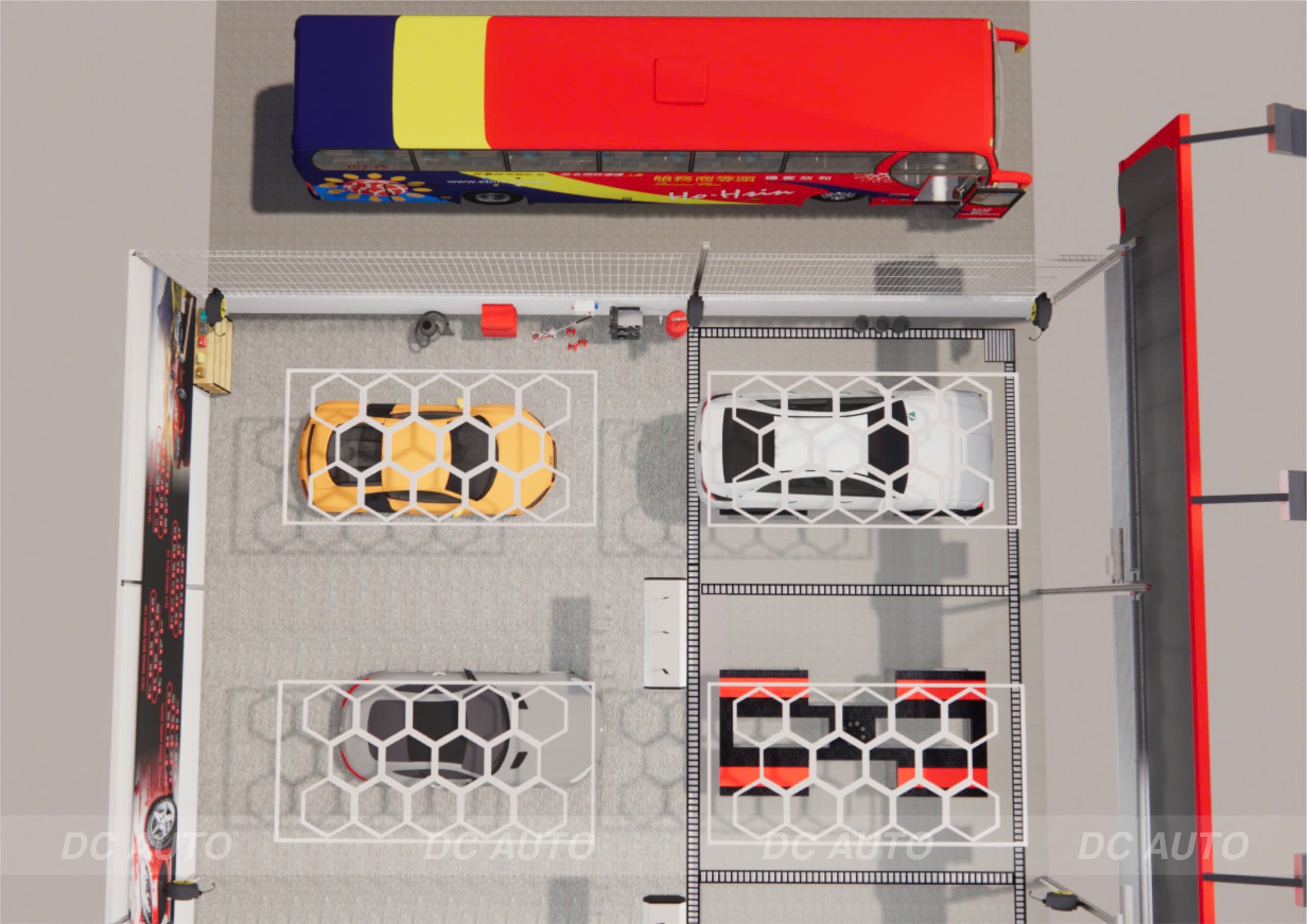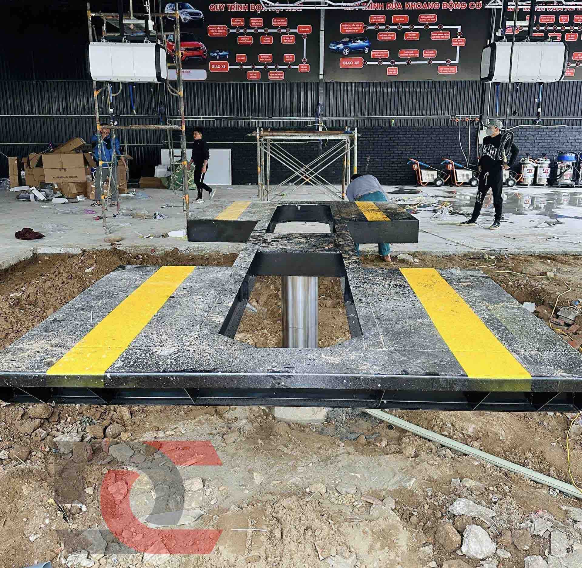 - 24m chiều ngang ở trung tâm là khu chăm sóc xe ô tô con, với công suất phục vụ cùng lúc khoảng 10 xe.