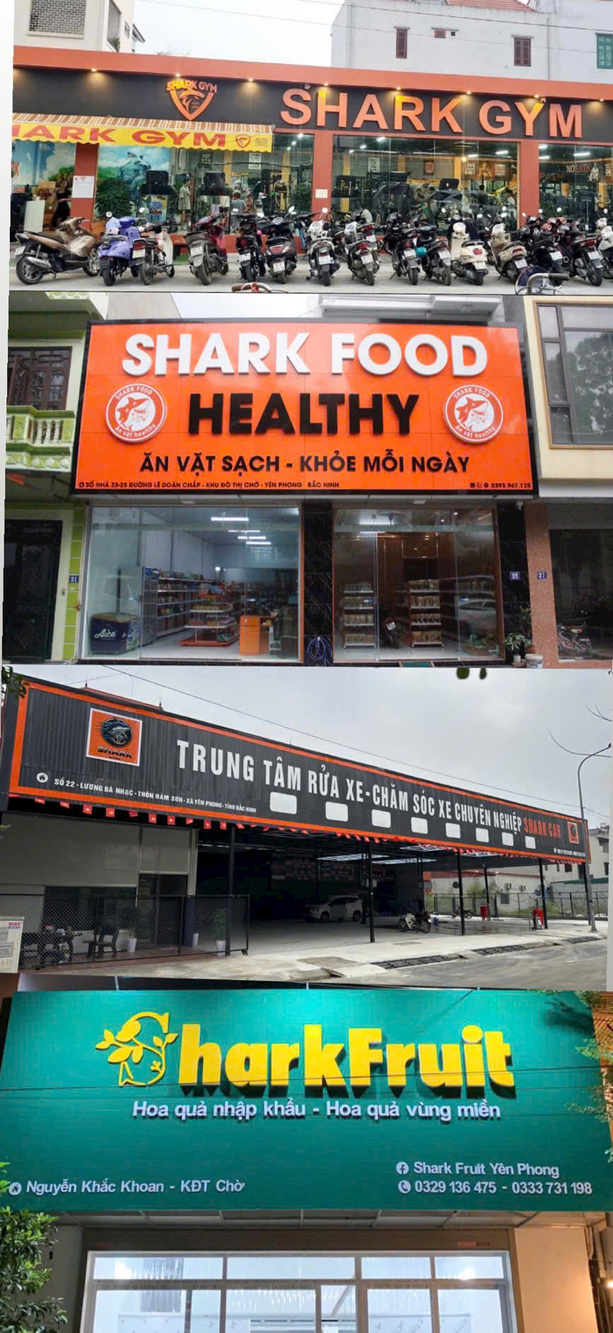 Anh chị chủ trung tâm vốn đã thành công trong nhiều lĩnh vực kinh doanh tại chính quê hương mình. Hệ sinh thái thương hiệu “Shark” đã rất quen thuộc với người dân địa phương, gồm: