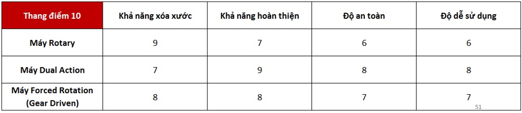 Tổng kết lại, chúng ta có thể hình dung so sánh 3 loại máy trên bằng thang điểm dưới đây