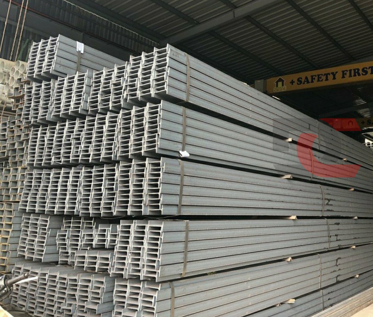Với phần cột các bạn có thể sử dụng cột tròn phi 90 - 110, dày 1.8mm-2mm, hoặc các khung thép I120 - I150 - I200