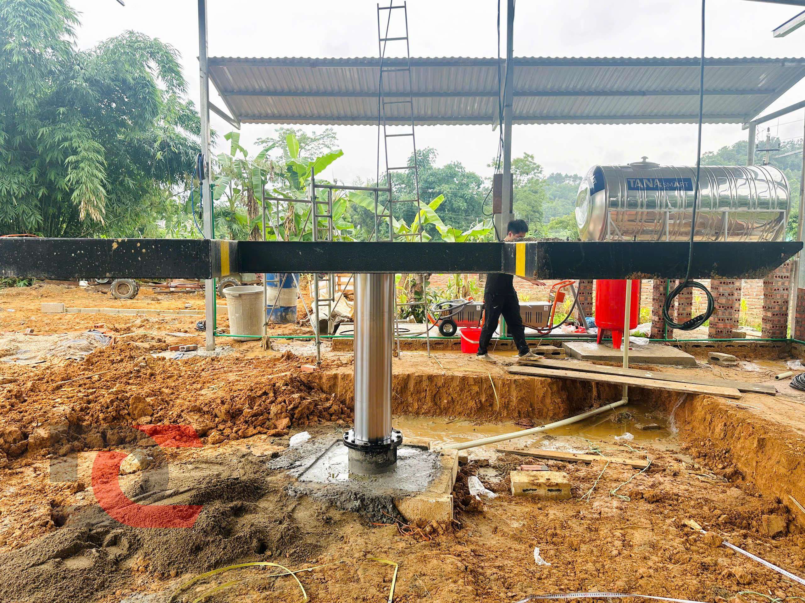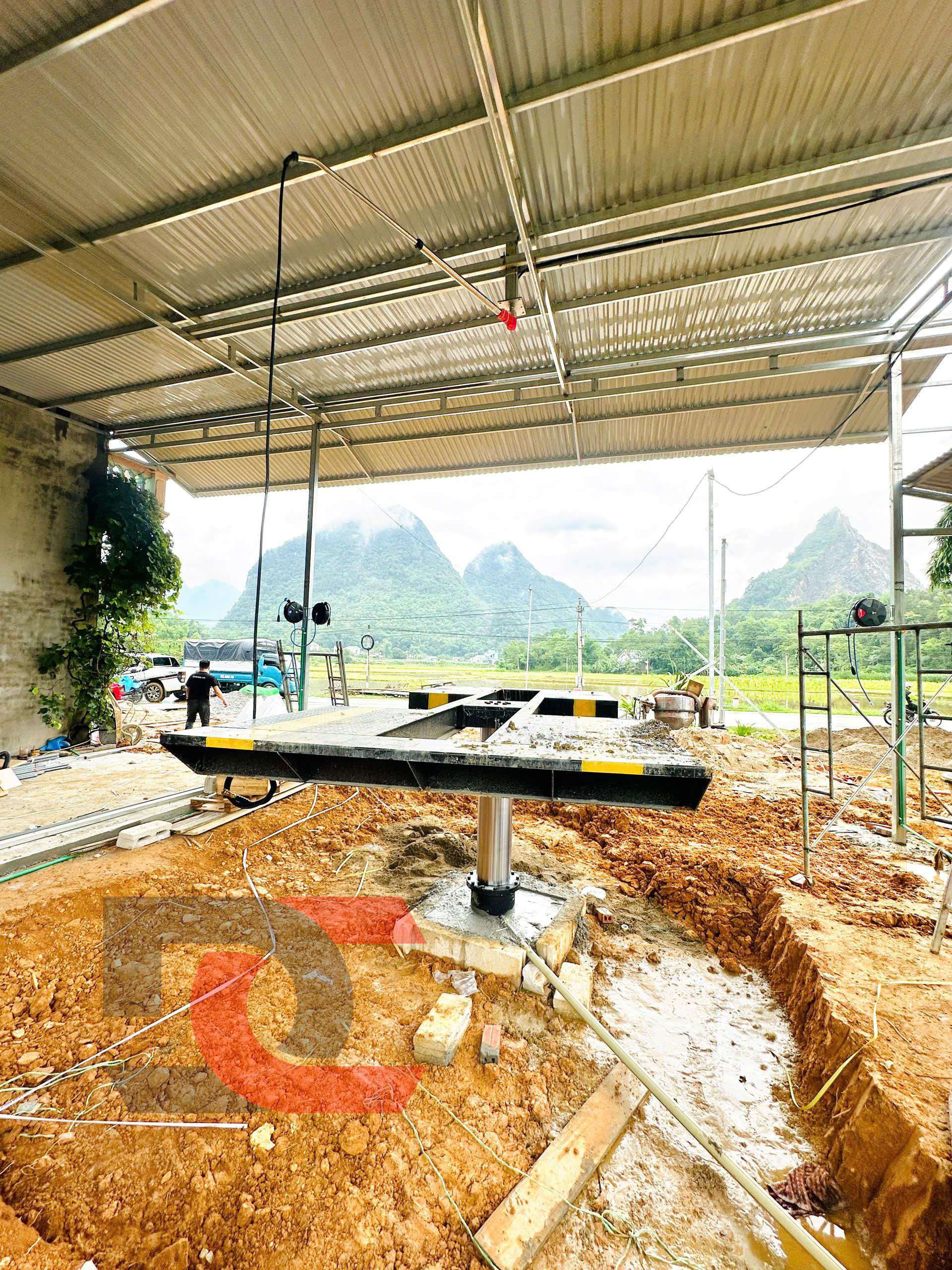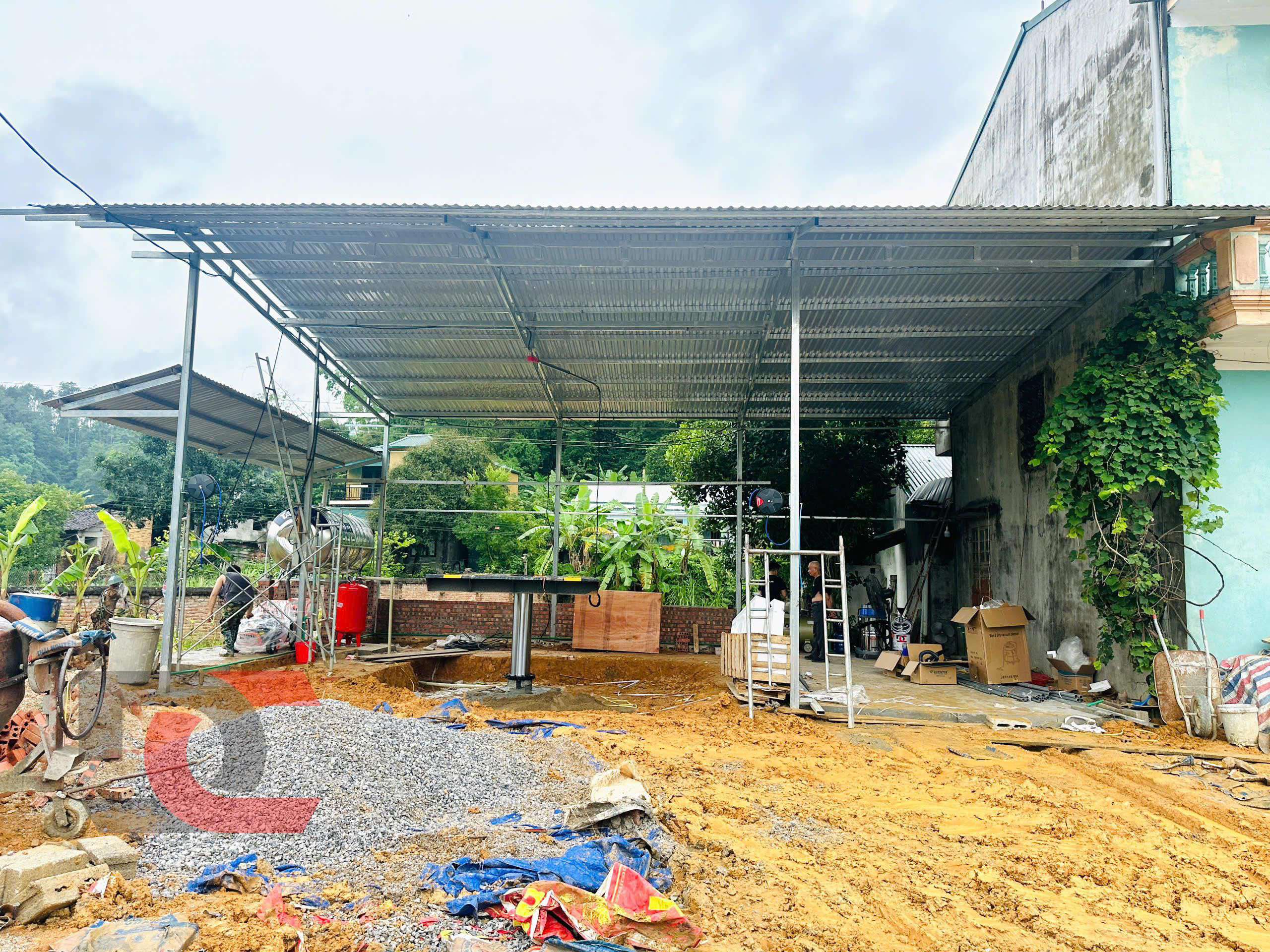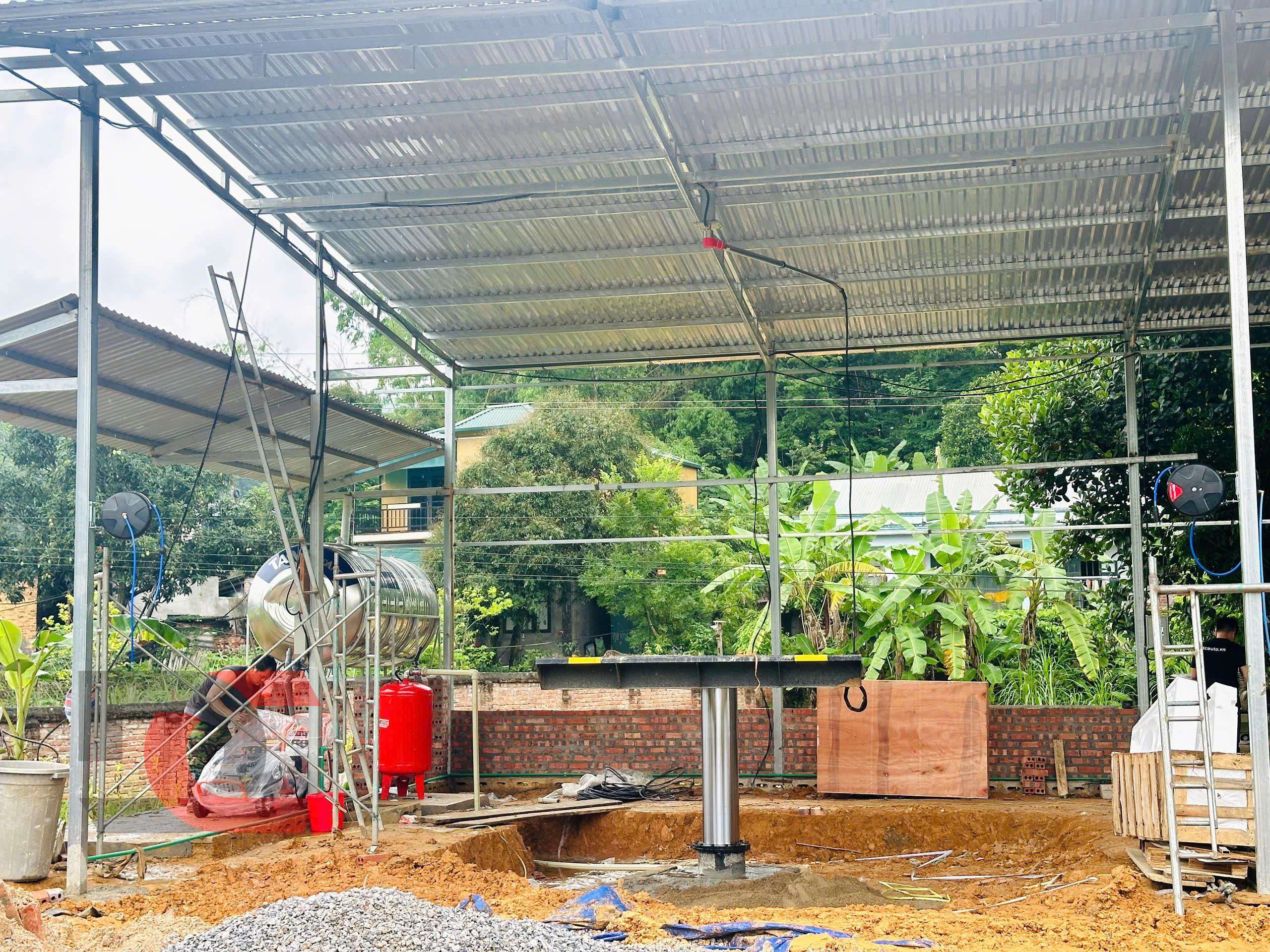 Khu vực lắp đặt cầu nâng và máy móc thiết bị sẽ được làm hệ khung mái che, ốp tôn xung quanh đơn giản rơi vào khoảng 170m2.