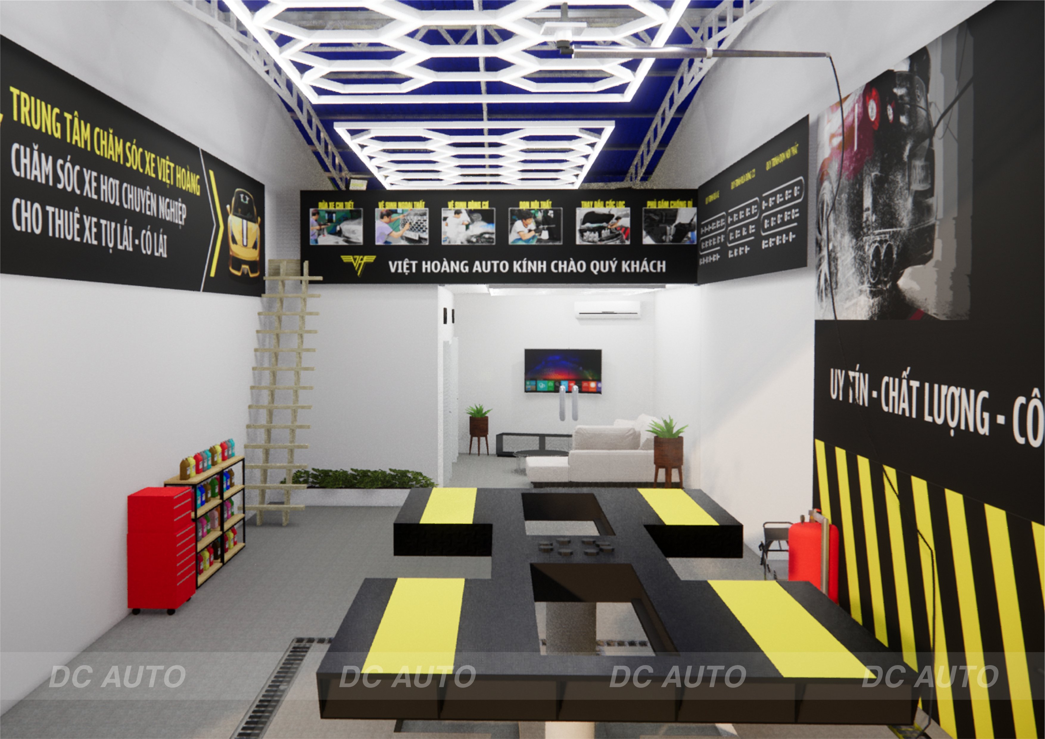 Tìm được vị trí mặt bằng mở Trung tâm ưng ý, bạn Việt Hoàng đã liên hệ, trao đổi ngay với DC Auto. DC Auto xuống trực tiếp địa chỉ Trung tâm khảo sát mặt bằng, tư vấn, lên phương án tối ưu, bố trí máy móc, thiết bị, lên bản vẽ kỹ thuật 2D, bản vẽ 3D công năng, lên bản thiết kế biển bảng quảng cáo, xây dựng hệ thống bảng giá dịch vụ cho Trung tâm, giúp bạn Việt Hoàng có thể nắm rõ, dễ dàng thi công, hình dung ra được Trung tâm chăm sóc xe của mình sẽ hoạt động, làm việc như nào. Chỉ trong vòng chưa đầy một tuần từ khi hai bên trao đổi, khảo sát mặt bằng đến khi đợi sửa lại mặt bằng, thi công nền móng. DC Auto đã lắp đặt hoàn thành cho Trung tâm chăm sóc xe, cho thuê xe tự lái, có lái Việt Hoàng Auto.