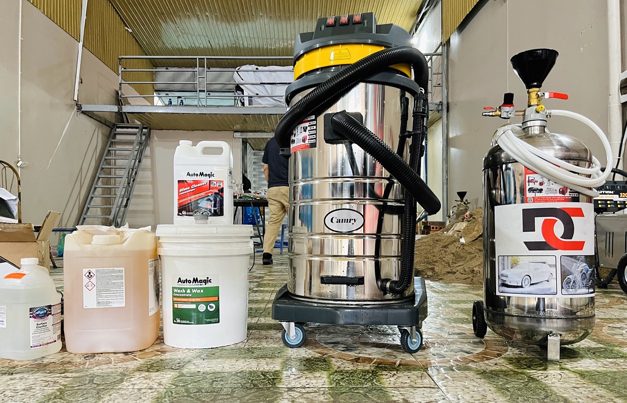Trung tâm chăm sóc xe, cho thuê xe tự lái, có lái Việt Hoàng Auto đầu tư toàn bộ máy móc, thiết bị, dụng cụ, hoá chất bên DC Auto với tổng chi phí là 150 triệu đồng. Cùng DC Auto xem có những máy móc, thiết bị, dụng cụ, hoá chất gì nhé: