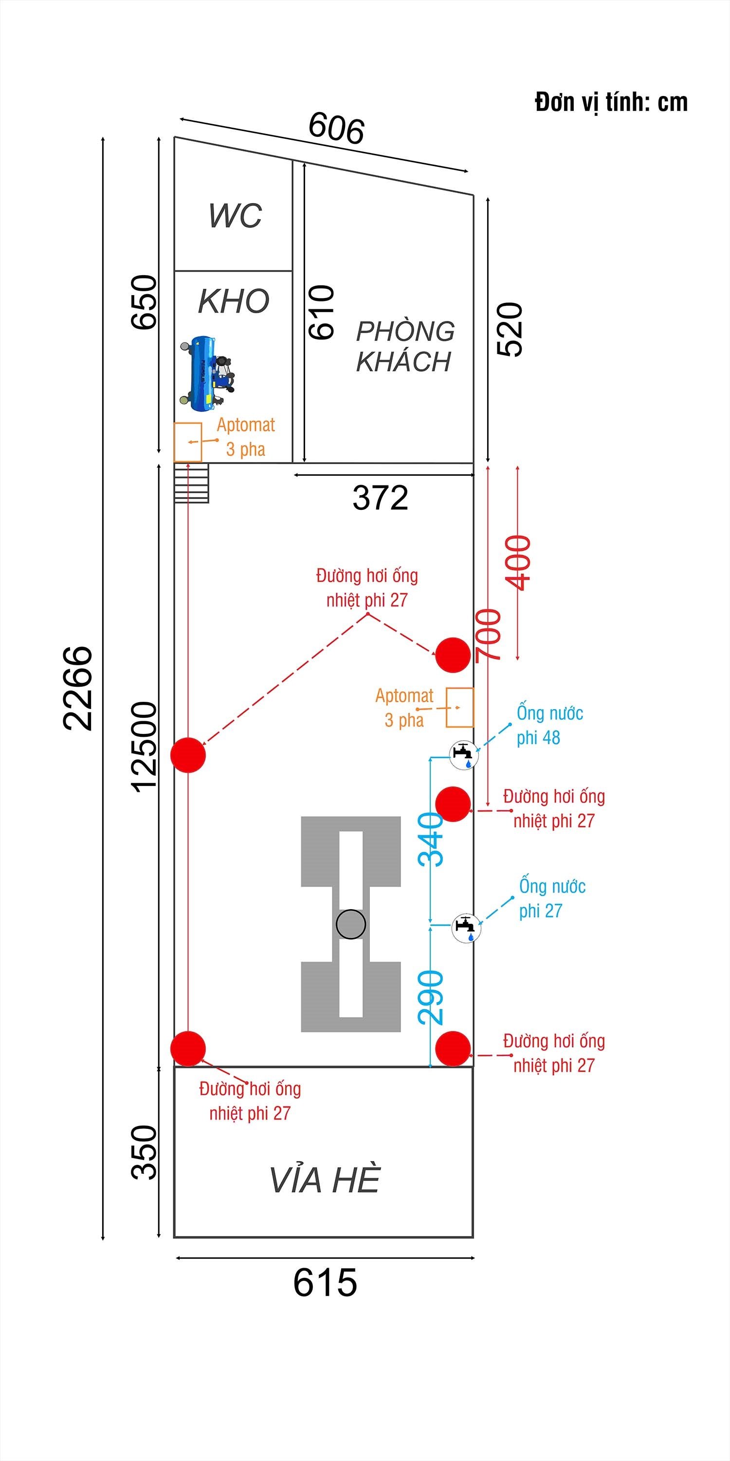 Với diện tích và mặt tiền 6m như vậy thì không thể quay được cầu nâng, DC Auto lên phương án tư vấn bố trí sao cho Trung tâm có thể hoạt động được hết công năng, tận dụng tối đa diện tích của Trung tâm chăm sóc xe Việt Hoàng Auto. Từ phía bên ngoài vào, bên tay phải chính là khoang rửa xe có cầu nâng, tiến vào bên trong là khoang dịch vụ làm chuyên sâu, bên trong có nhà kho, phòng ăn và 1 phòng vệ sinh. Phía bên trên còn có thêm 1 gác xép, được dùng làm chỗ nghỉ ngơi cho nhân viên.