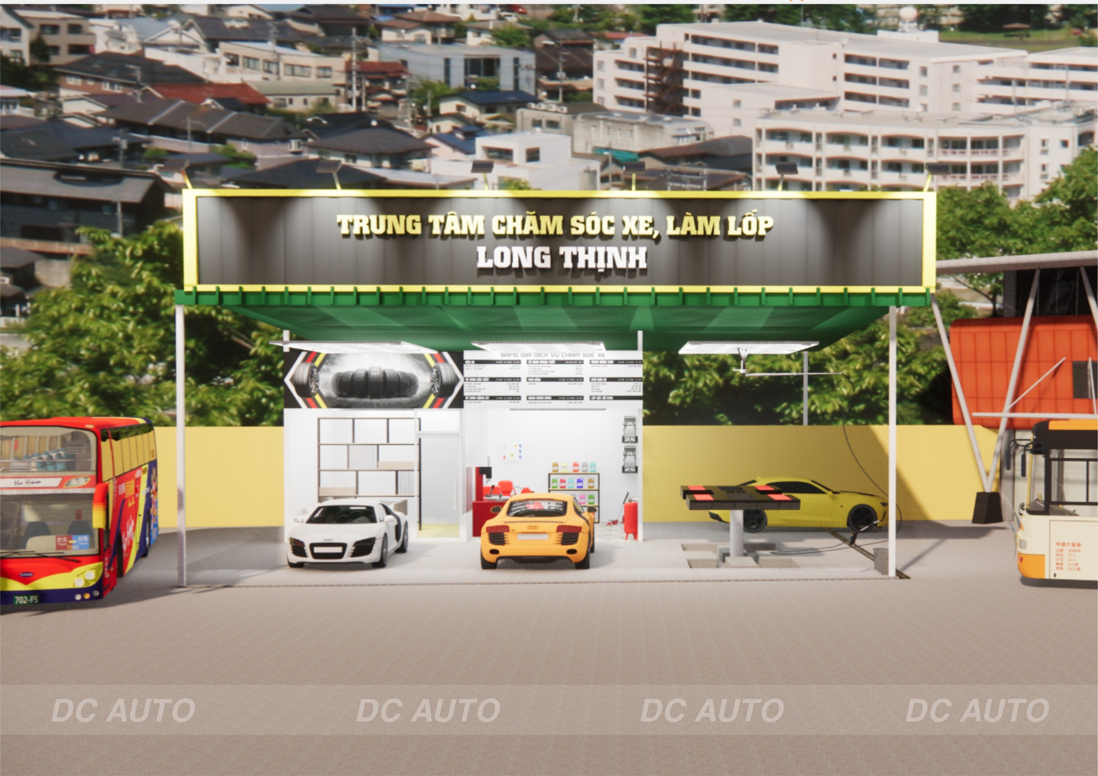 Xin chào các bạn! Chào mừng các bạn đã quay lại với chuyên mục mạng lưới khách hàng của DC. Hôm nay DC đang có mặt tại bến xe Vĩnh Tường nằm ở QL2, Tân Tiến, Vĩnh Tường, Vĩnh Phúc, để lắp đặt hoàn thiện bộ thiết bị chăm sóc xe, làm lốp cho Trung tâm chăm sóc xe chuyên nghiệp Long Thịnh. Hãy cùng DC đi xem Long Thịnh Auto bố trí các khu vực làm dịch vụ và máy móc thiết bị được DC lắp đặt như thế nào nhé.