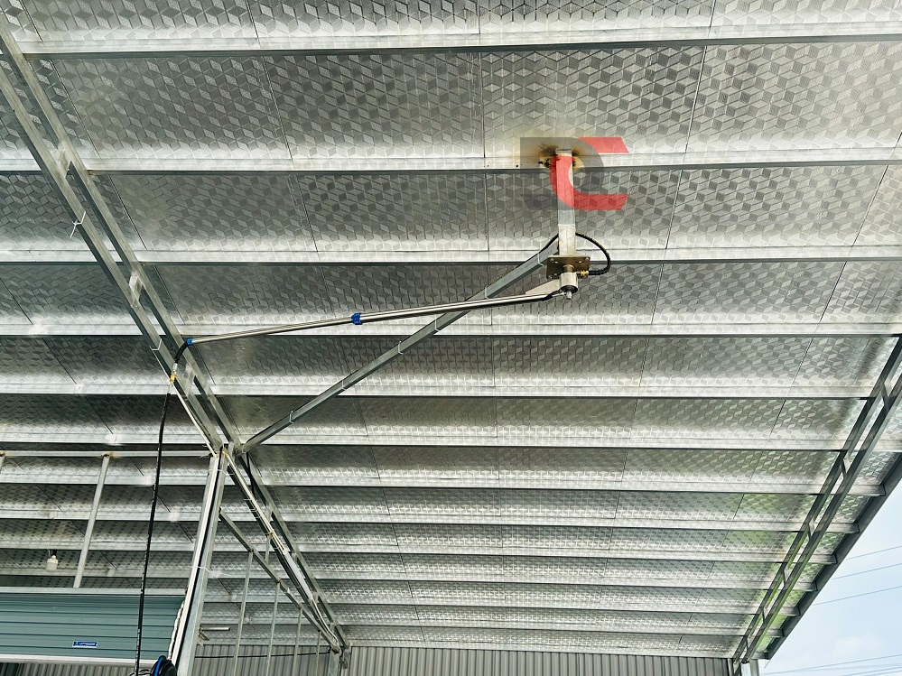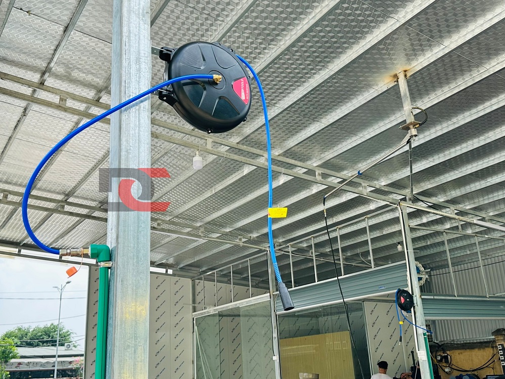 01 Tay quay đơn 360° được kết nối với 1 máy rửa xe 5.5Kw, được lắp đặt phía bên trên cầu nâng 1 trụ.
