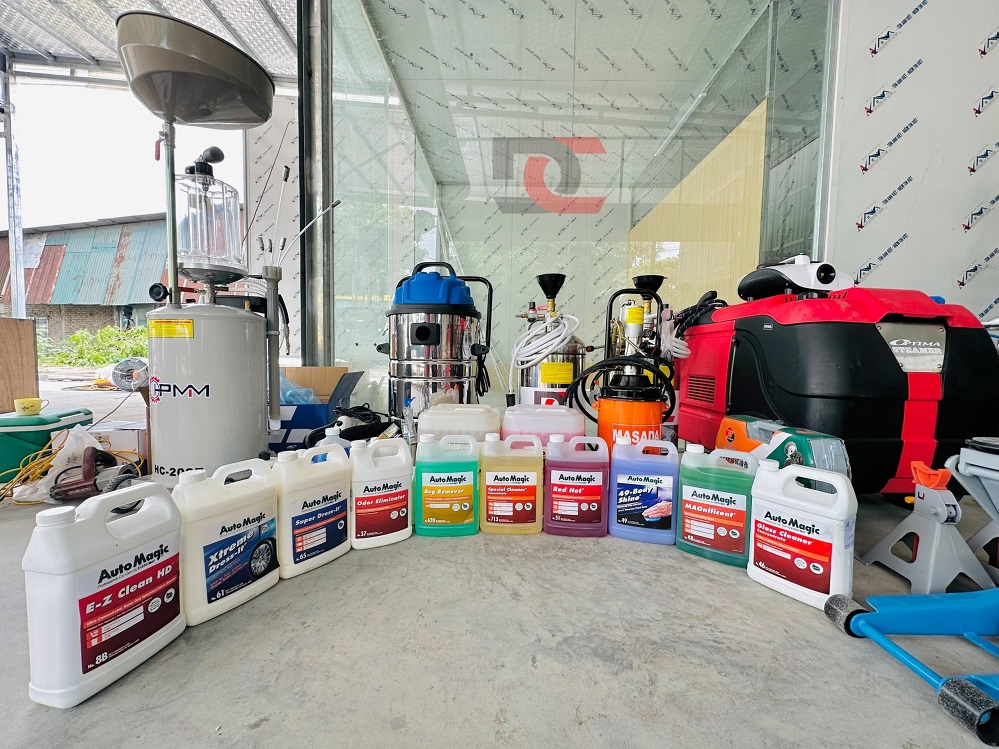 Máy móc, thiết bị, dụng cụ, đồ nghề trung tâm chăm sóc xe chuyên nghiệp Long Thịnh đầu tư