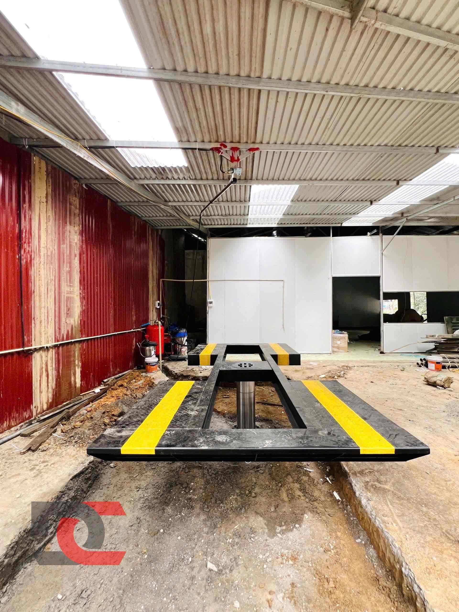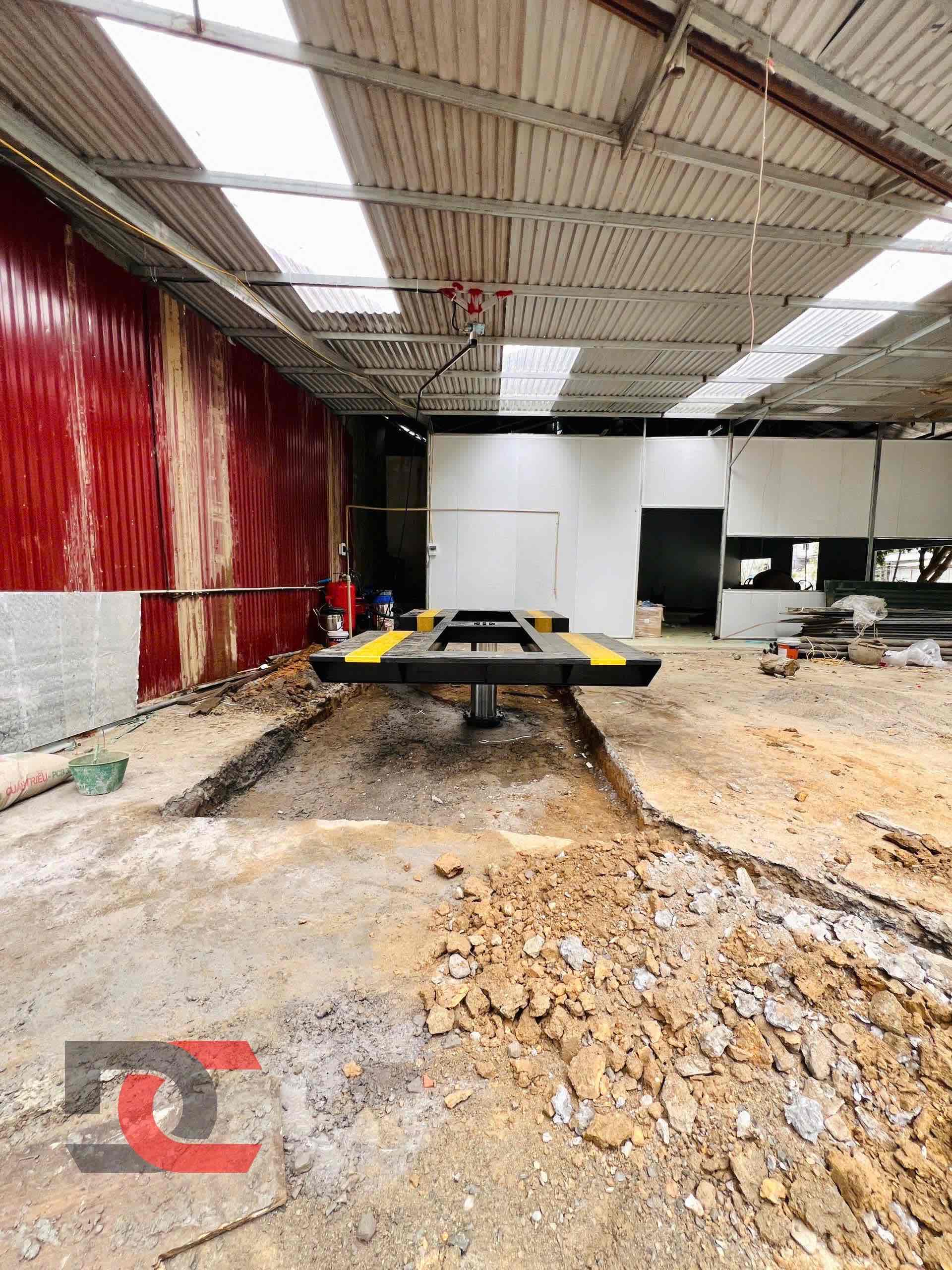 - Khu vực thi công chính 5x7m lắp đặt cầu nâng ô tô phục vụ rửa và chăm sóc xe.