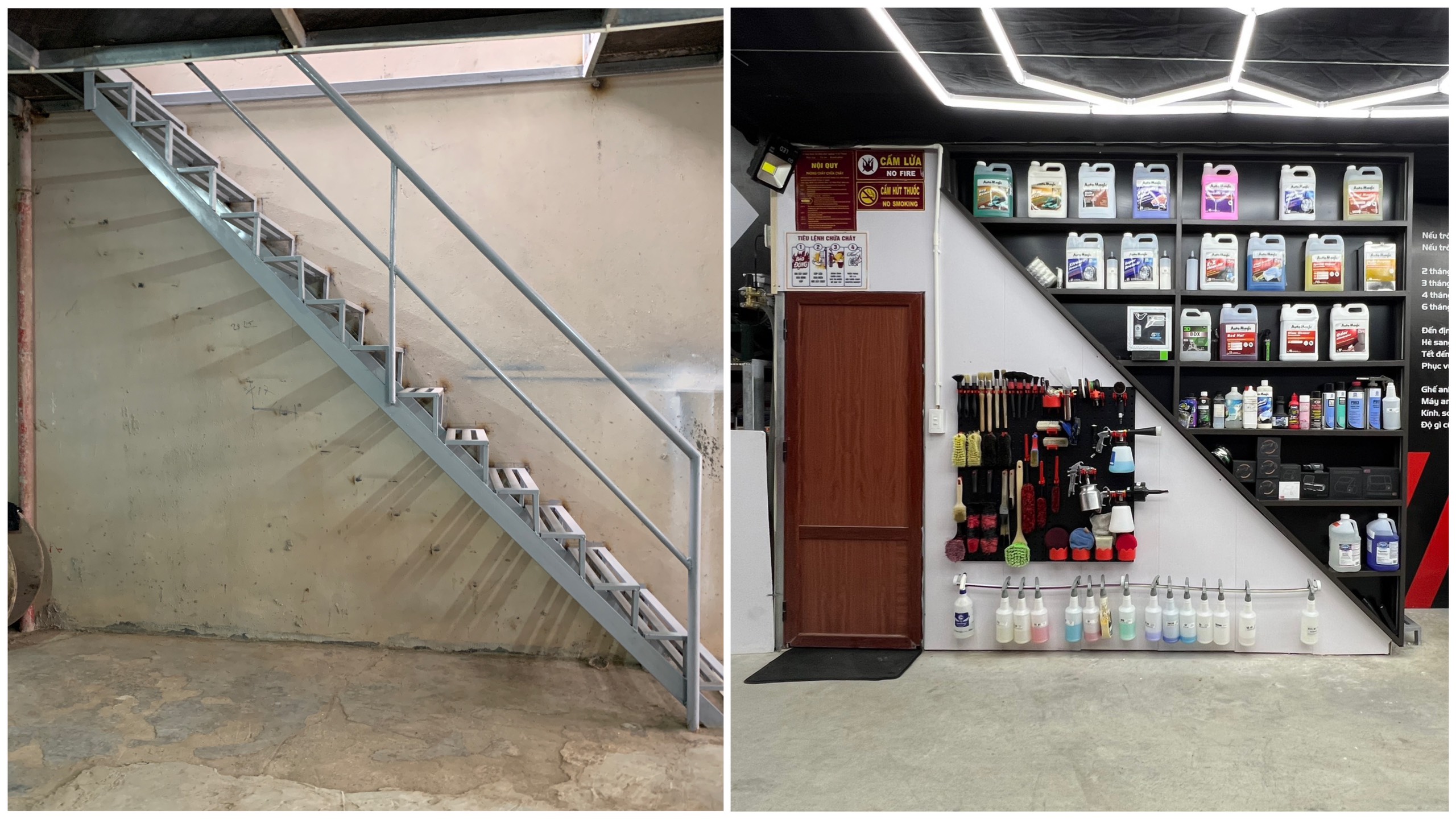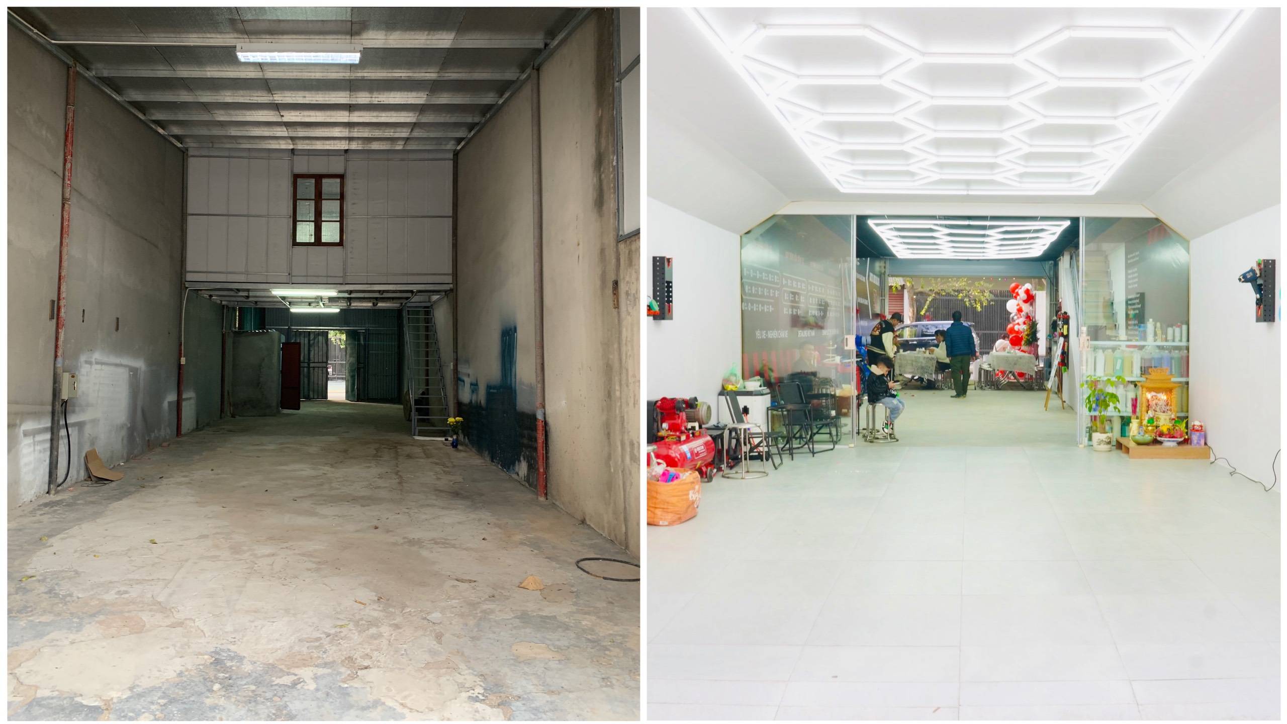 - Khoang dịch vụ chuyên sâu mặt 55 Nguyễn Văn Hưởng diện tích 33m² được lắp cửa kính, triển khai làm phòng đánh bóng, phủ ceramic, dán phim, lắp đồ chơi và các dịch vụ khác.