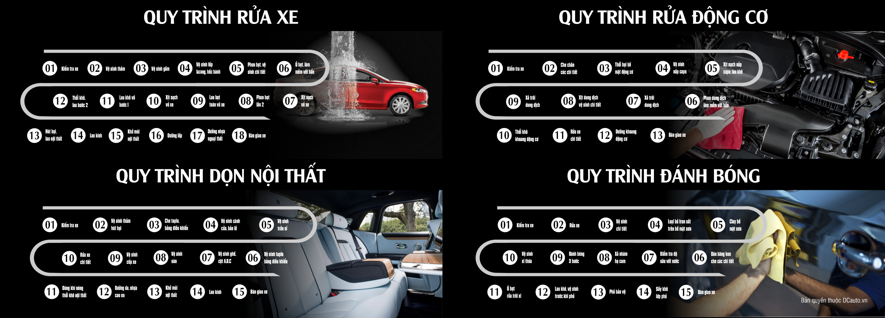 - Đào tạo dạy nghề các dịch vụ: Rửa xe - Rửa máy - Dọn nội thất - Đánh bóng hiệu chỉnh sơn - Phủ bảo vệ