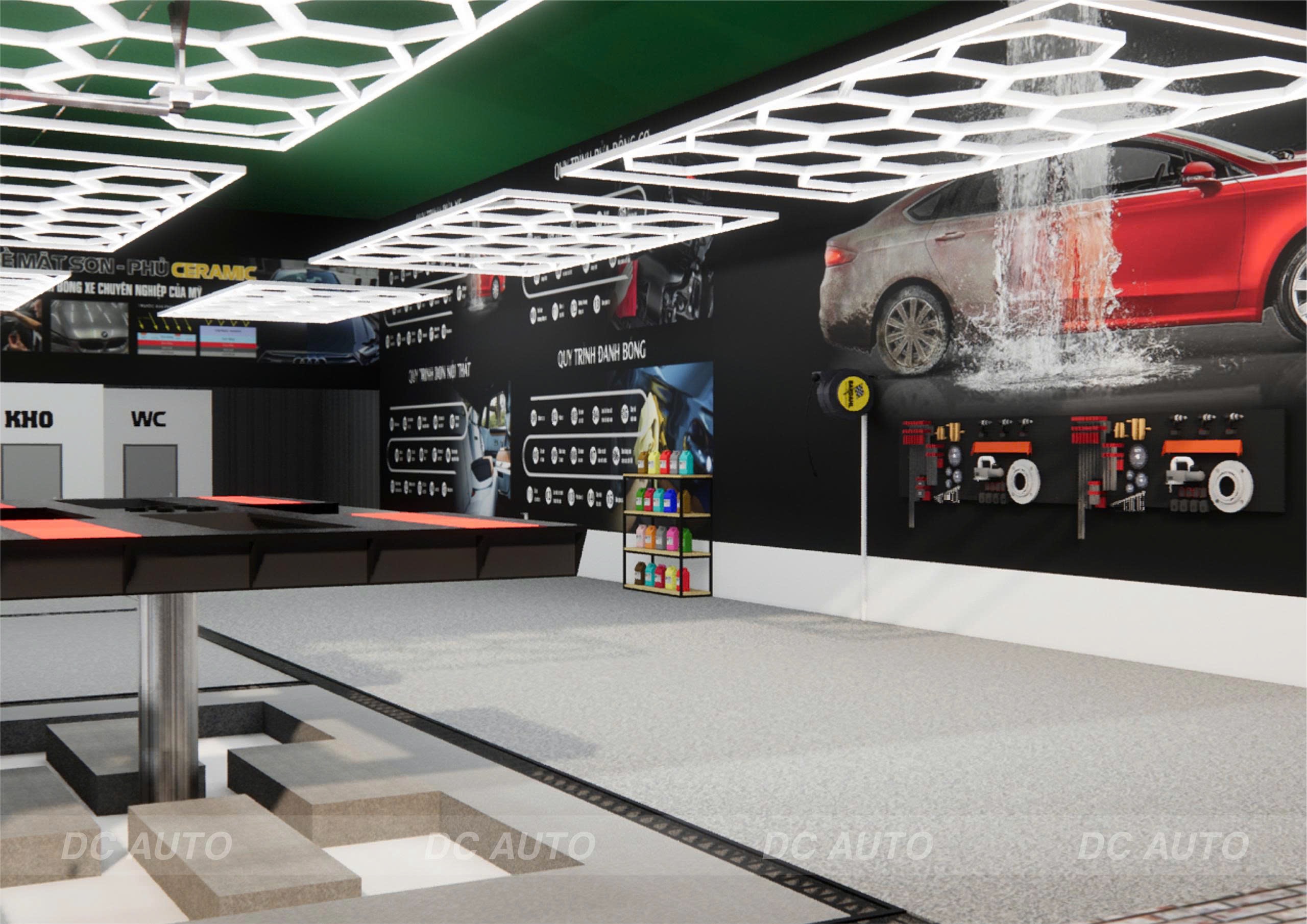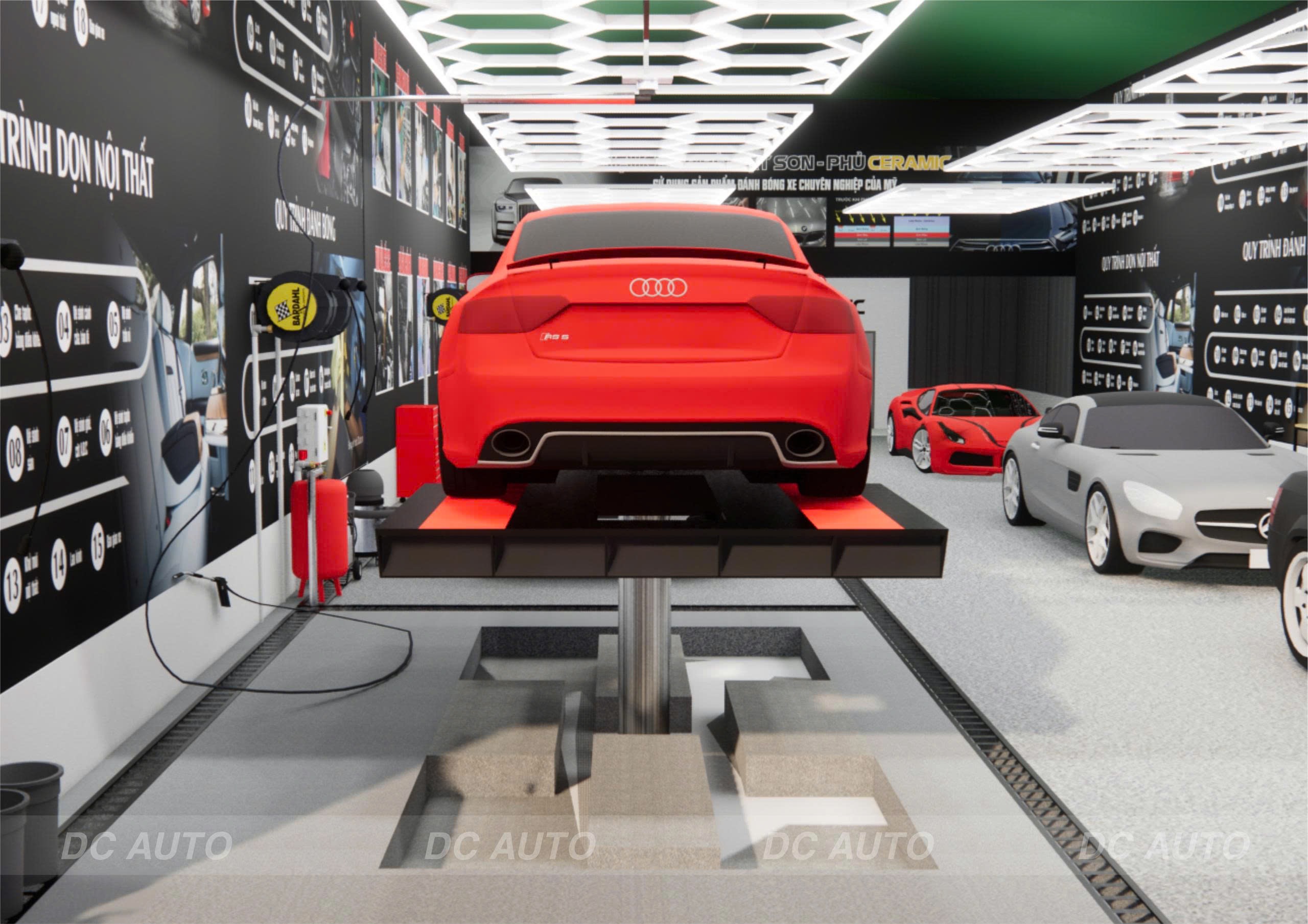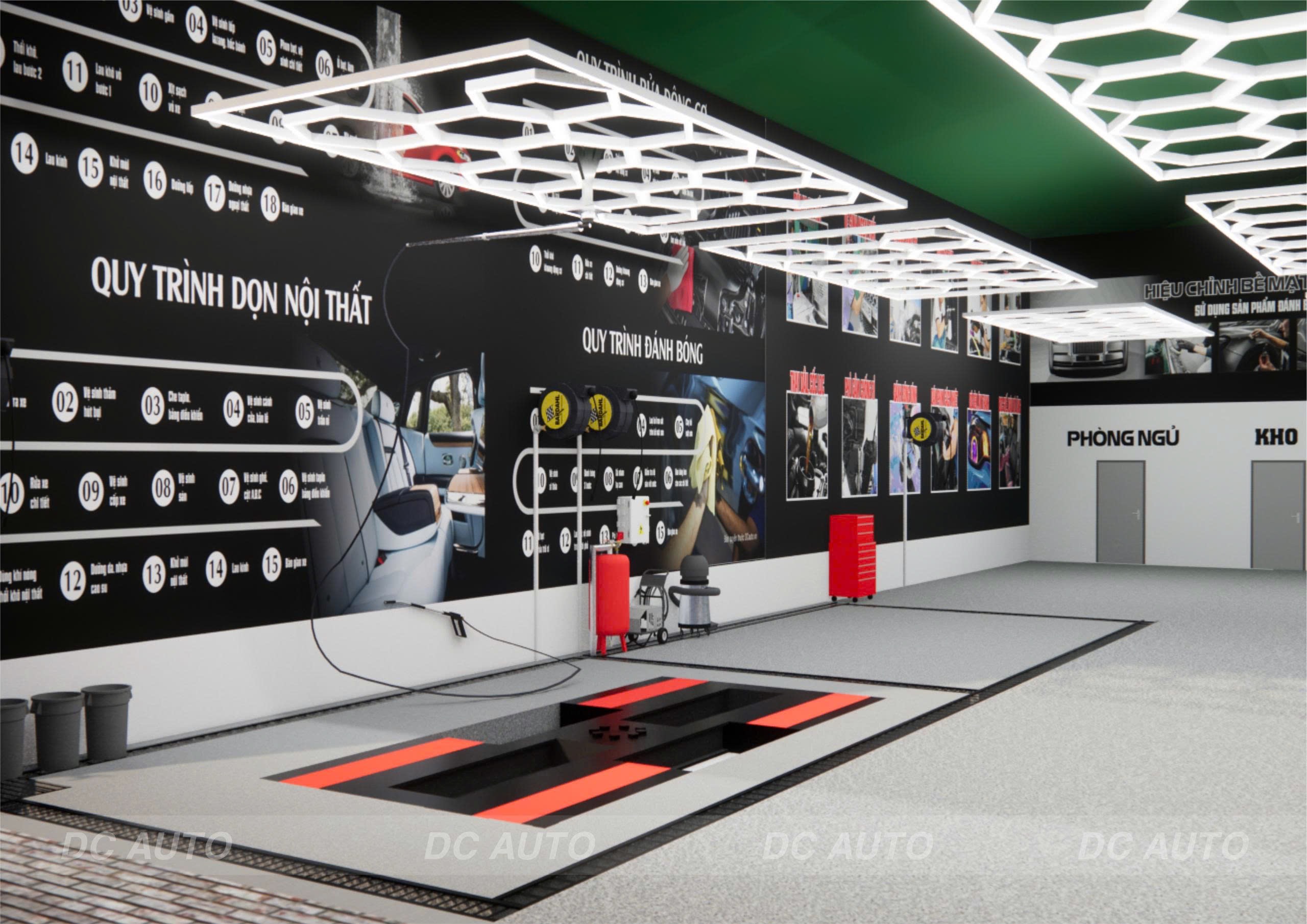 - Hệ thống chiếu sáng được tính toán đảm bảo hỗ trợ tốt cho dịch vụ đánh bóng và chăm sóc chi tiết.