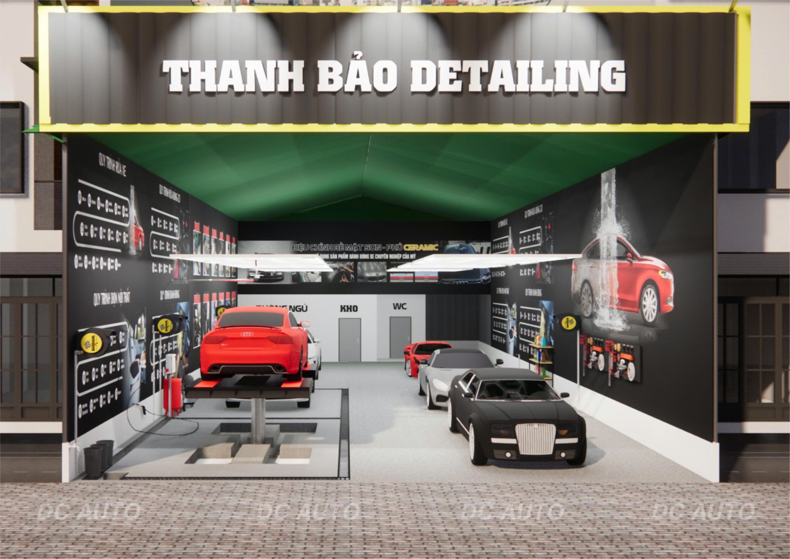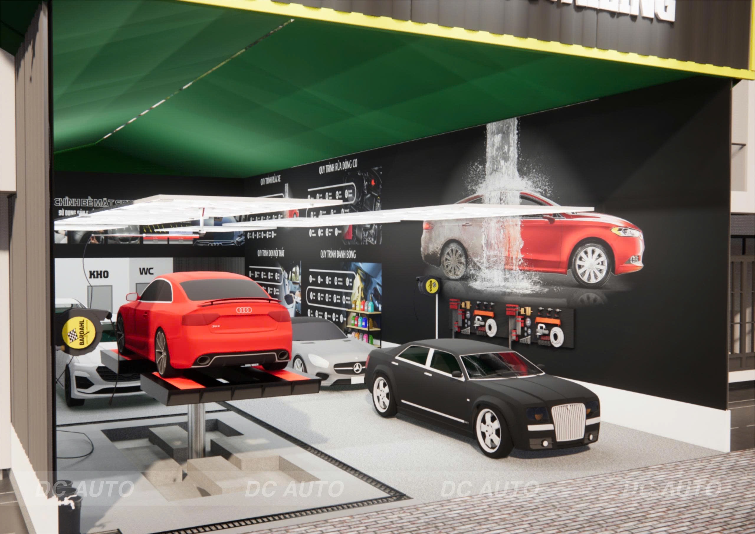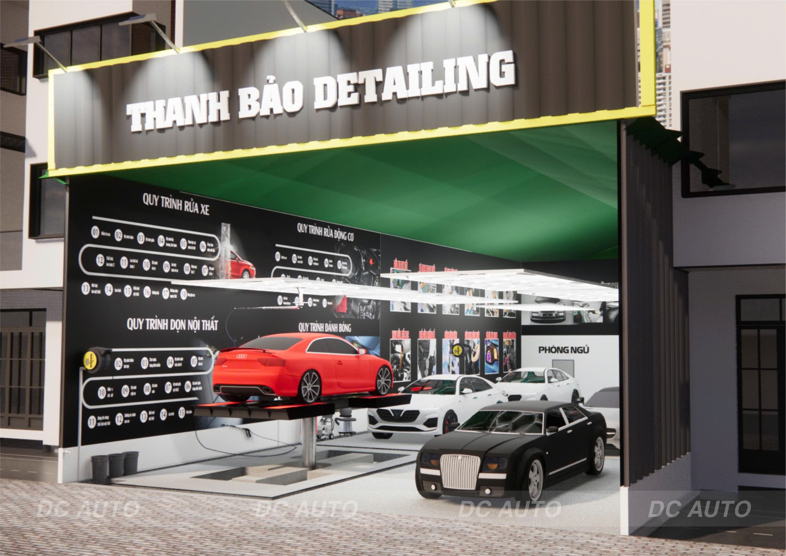 - Hệ thống chiếu sáng được tính toán đảm bảo hỗ trợ tốt cho dịch vụ đánh bóng và chăm sóc chi tiết.
