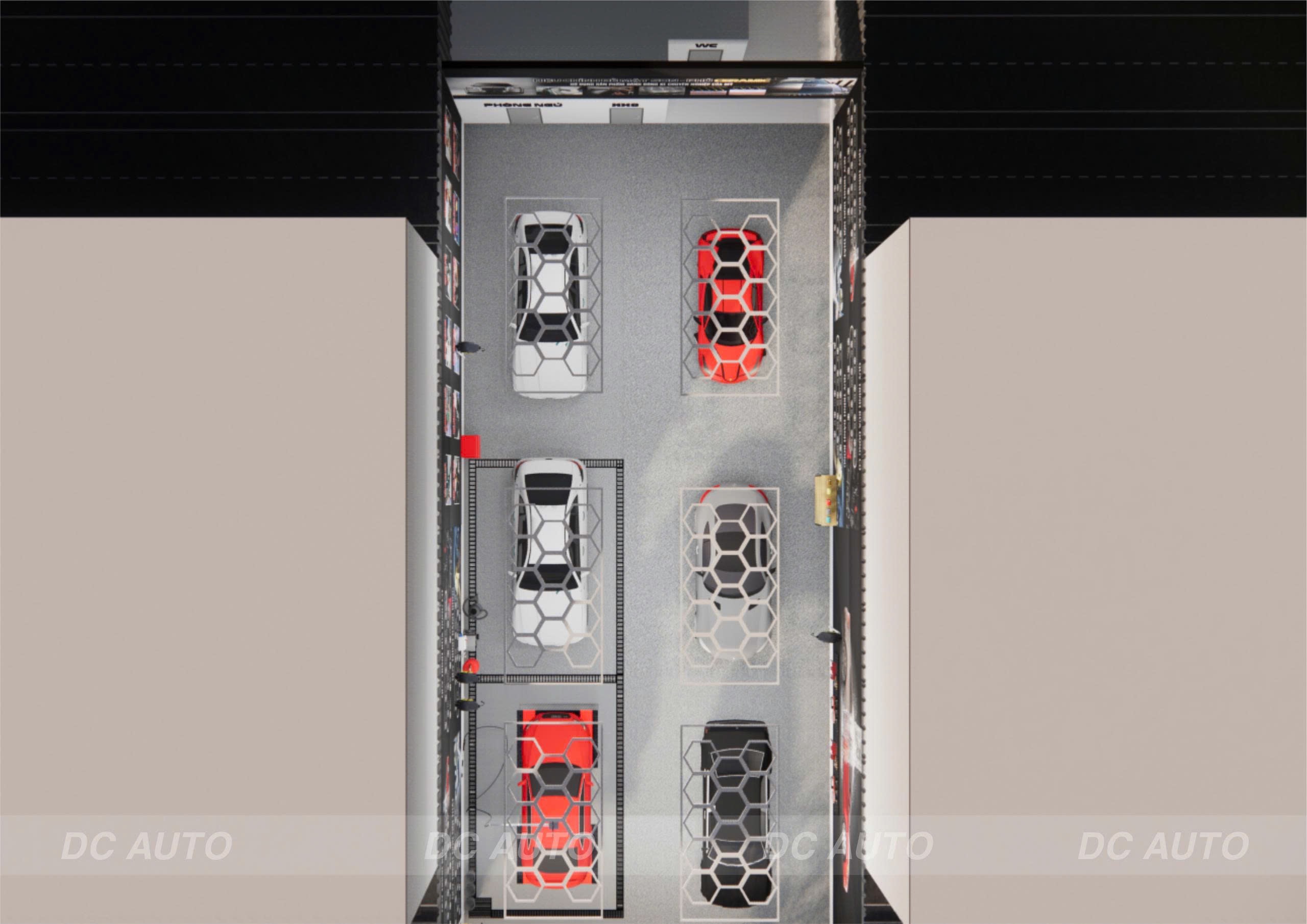 - Khu vực rửa và chăm sóc cơ bản đặt phía ngoài, thuận tiện đón xe.