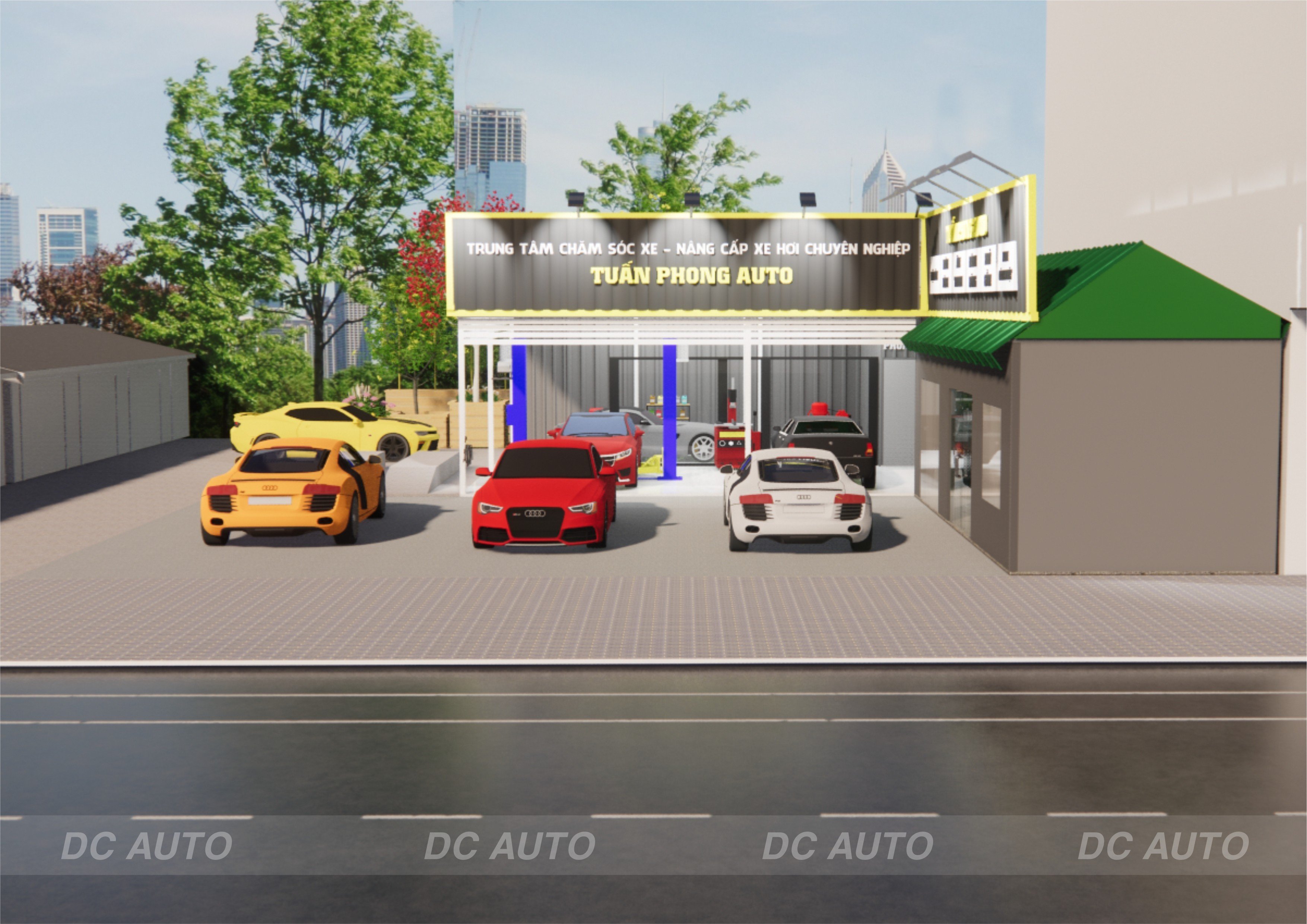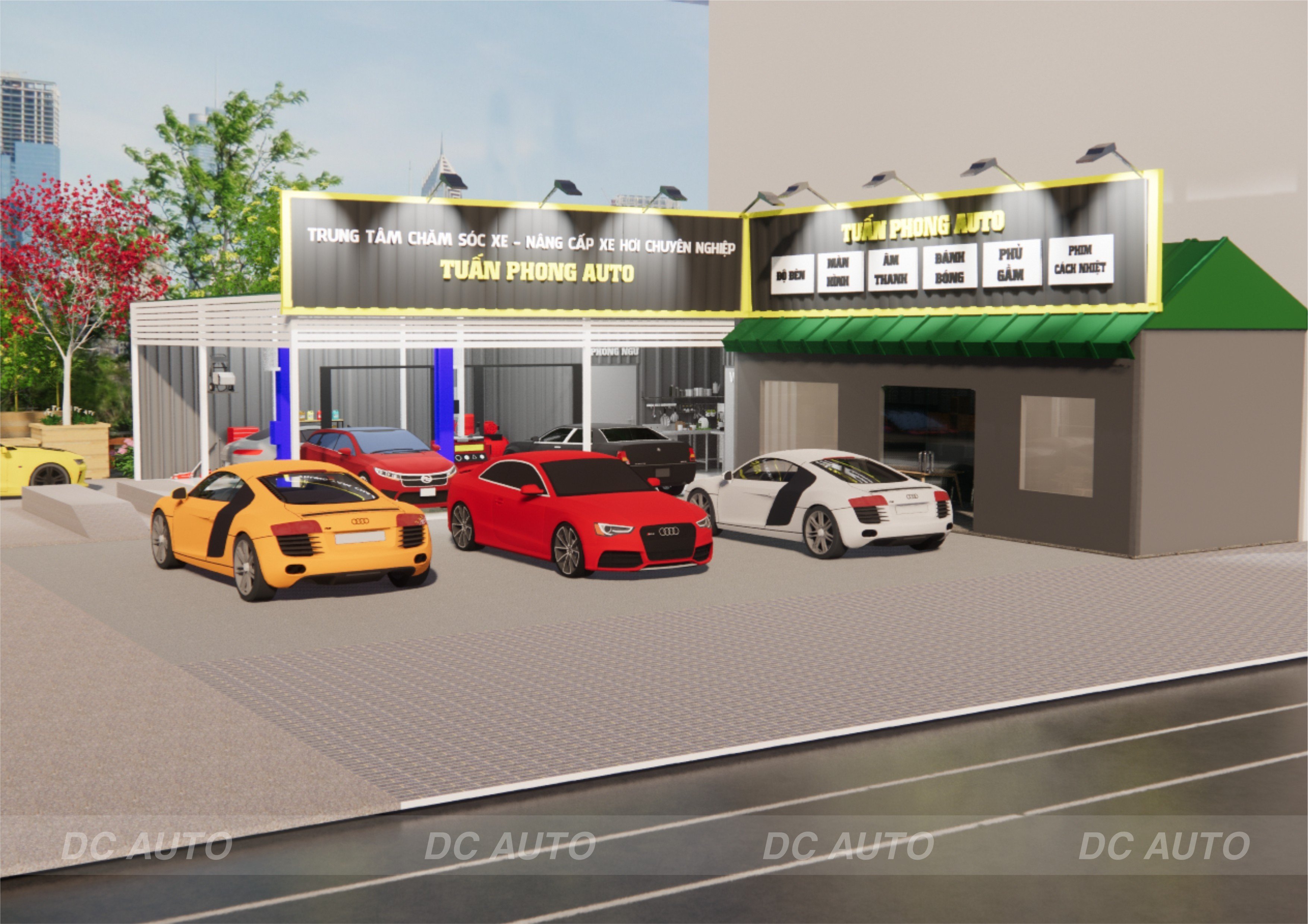 Trung tâm chăm sóc xe Tuấn Phong có tổng diện tích gần 200m² với mặt tiền 11m, sâu vào 19m. Được chia ra làm 3 khu chính, khu phòng tiếp khách và khu triển khai dịch vụ chuyên sâu được thiết kế, xây dựng kiểu chữ L nối liền nhau. Ở phía trước hai khu vực này chính là khu vực rửa xe, sẽ được thiết kế mái sóng di động để che nắng, che mưa chứ không xây dựng thành phòng hay lợp mái.