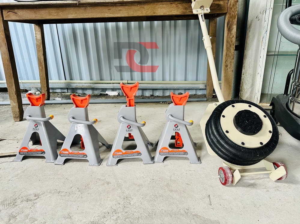 Bộ thiết bị, dụng cụ hỗ trợ làm lốp, sửa chữa: Mễ kê bánh xe, Kích nâng bóng hơi 3 bóng, keo vá, bộ tháo ti van, máy mài xăm,...