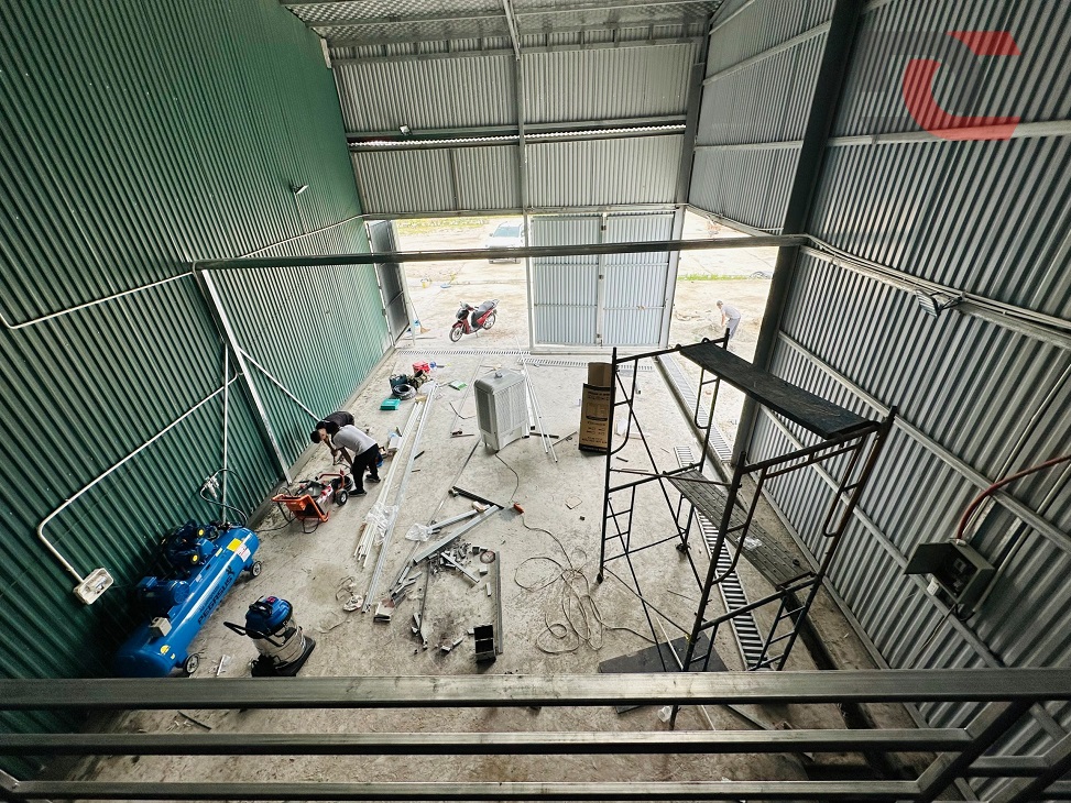 Cùng với diện tích 116 m² Win Auto chia ra làm ba khoang làm dịch vụ chính. Phía bên tay trái, ngay cửa bên được tính toán làm khoang dịch vụ rửa xe, ngay bên cạnh là khoang dịch vụ chuyên sâu như dọn máy, dọn nội thất, vệ sinh ngoại thất và triển khai các dịch vụ gia tăng khác. Tiến sâu vào bên trong chính là khu vực được triển khai làm phòng đánh bóng - phủ ceramic, với diện tích phòng là 4.5m, sâu vào 6m, toàn bộ sẽ được làm trần thạch cao, bao quanh được ốp tấm nhựa ốp trần để tối ưu chi phí. Bên cạnh được thiết kế làm phòng tiếp khách với diện tích 2.5*6m. Toàn bộ phía trên phòng đánh bóng - phủ ceramic được thiết kế làm gác xép, để chứa đồ hoặc có thể là nơi nghỉ ngơi.