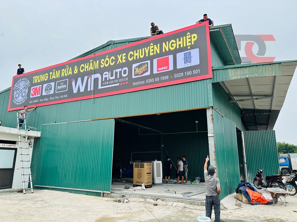 Trung tâm rửa và chăm sóc xe chuyên nghiệp Win Auto có địa chỉ toạ lạc tại: Km 29, QL32, Tam Hiệp, Phúc Thọ, Hà Nội. Nẳm trong khu phức hợp cho thuê kho của bên kho điện tử, điện lạnh, không gian xung quanh có khoảng lưu không rất rộng - khách hàng của DC Auto có thuê lại một kho hàng tại đây. Cải tạo lại để xây dựng lên trung tâm chăm sóc xe chuyên nghiệp. Với vị trí nằm ngoài cùng dãy kho, lợi thế có hai mặt tiền, có một đường cửa chính đón thẳng xe vào và một mặt cửa ngang bên cạnh. Chính vì vậy rất thuận tiện cho việc ra vào xe ô tô làm dịch vụ. Với mặt tiền rộng 7.7m, sâu vào 15m, tổng diện tích rơi vào khoảng 116 m².