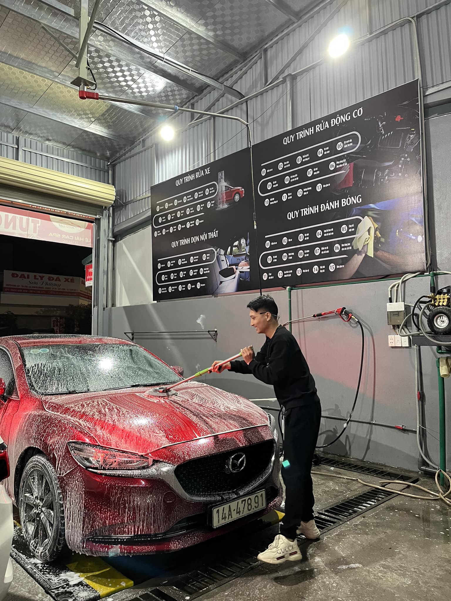 Như vây, với các thiết bị, máy móc, dụng cụ chăm sóc xe đầy đủ và cơ bản nhất, anh Hải đã cho Trung tâm chăm sóc xe và rửa xe của mình đi vào hoạt động ngay những ngày gần tết nguyên đán. Để phục vụ, chăm sóc xế yêu của mọi nhà đón tết an lành.