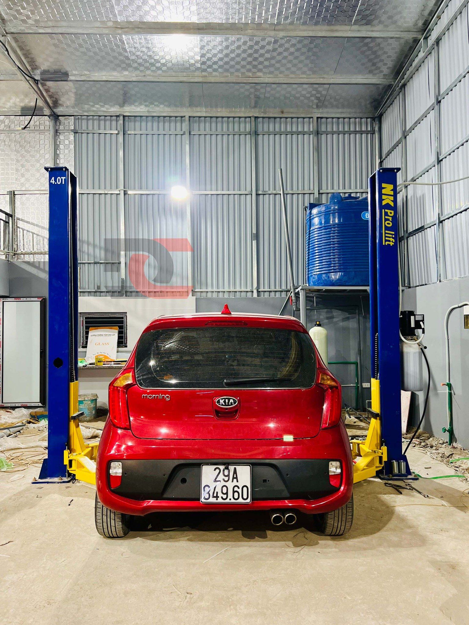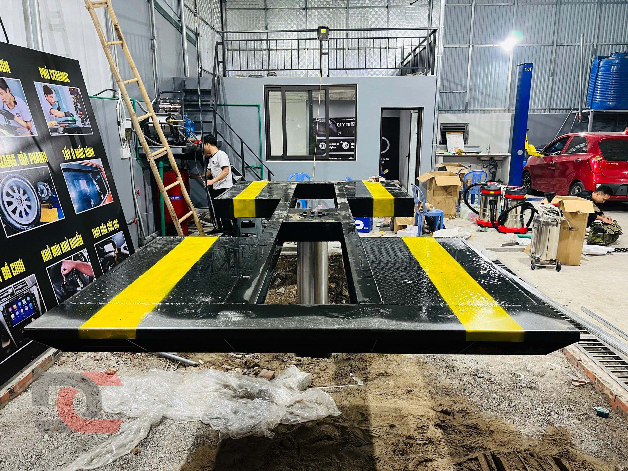 01 cầu nâng 2 trụ cổng dưới NK POLIFT, phục vụ cho khoang làm gầm, sửa chữa nhanh.