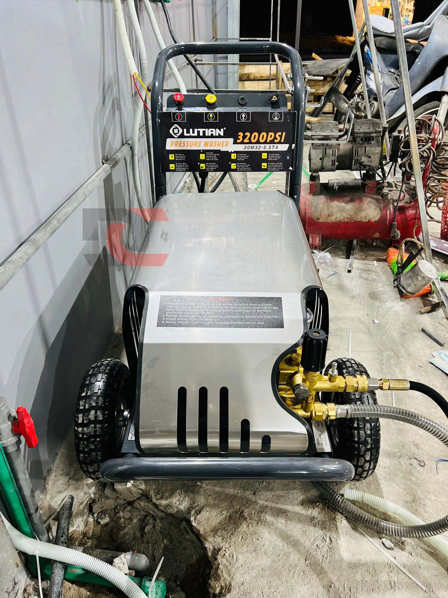 02 máy rửa xe cao áp Lutian 20M32-5.5T4, được bố trí riêng biệt cho từng khoang dịch vụ.